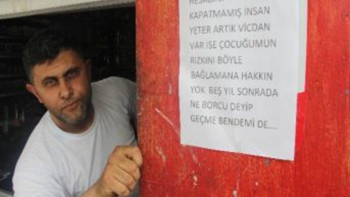 Adana'da, 5-6 yıldır bir türlü alacaklarını tahsil edemeyen bir bakkal, borçlu vatandaşı dükkanının duvarına "Ey beş yıldır hesabını kapatmamış insan, yeter artık vicdan varsa, çocuğumun rızkını böyle bağlamaya hakkın yok. Beş yıl sonra ne borcu deyip geçme bende mi..." şeklinde astığı yazıyla uyardı.