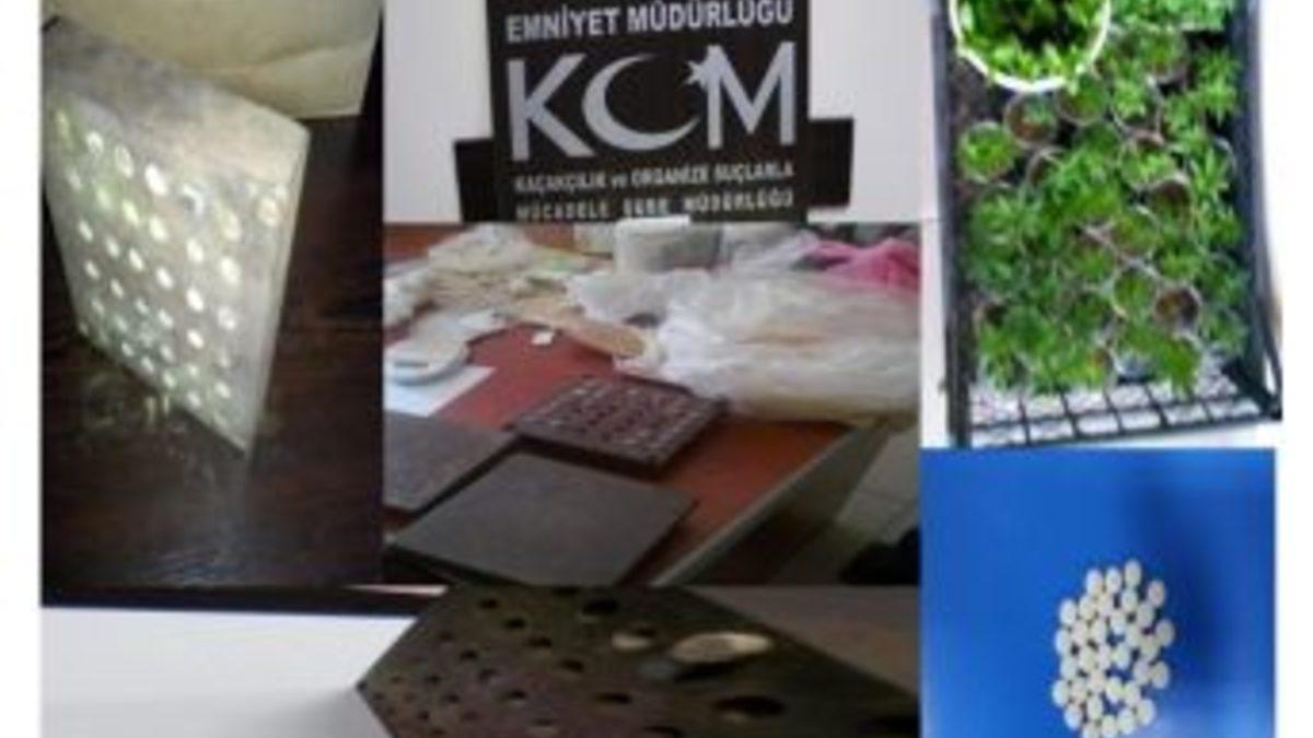 Balıkesir polisinin Bigadiç ilçesinde düzenlediği uyuşturucu operasyonunda 5 kişi gözaltına alınırken 95 sentetik uyuşturucu hap ve 225 kök kenevir ele geçirildi.Balıkesir Emniyet Müdürlüğü Kaçakçılık ve Organize Suçlarla Mücadele Şube Müdürlüğü ekipleri Bigadiç ilçesinde operasyon düzenledi. Operasyonda sentetik uyuşturucu hap imal ettiği ve sattığı iddia edilen 5 şüpheli yakalandı. Şüphelilerden T.K. (37) çıkarıldığı adli makamlarca tutuklanırken, diğer şüpheliler tutuksuz yargılanmak üzere serbest bırakıldı. Operasyonda sentetik uyuşturucu hap basmaya yarayan araç ve kalıpları, 95 adet sentetik uyuşturucu hap, sentetik uyuşturucu hap yapımında kullanılan çeşitli miktarlarda çok sayıda toz halindeki kimyasal maddeler ve 225 adet kök kenevir bitkisi elde geçirildi.