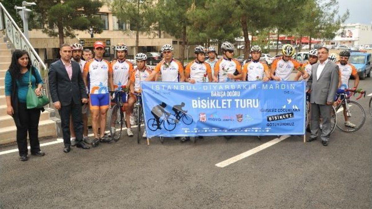 Sporcular, 8 etaptan oluşan ve toplamda bin 545 kilometrelik turlarının kalan kısmını Mardin’de tamamlamak üzere Diyarbakır Büyükşehir Belediyesi önünden Mardin istikametine doğru yola çıktı.