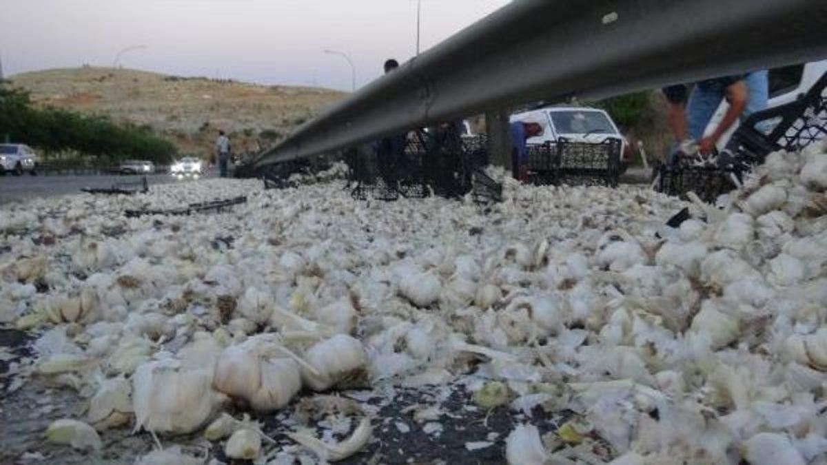 Kaza, akşam saatlerinde Akabe Mahallesi'nde meydana geldi. Gaziantep'in Araban İlçesi’nden yüklediği sarımsakları Şanlıurfa'ya getiren 42 yaşındaki Ahmet A.'nın kullandığı 27 Y 9480 plakalı TIR, yokuştan inerken sürücüsünün direksiyon hakimiyetini kaybetmesi sonucu bariyerlere çarparak durdu. Kazada yaralanan olmazken, dorsede bulunan 23 ton sarımsağın büyük bölümü yola saçıldı. Sarımsakların üzerinden geçen araçlar, yolun kayganlaşmasıyla yokuşta zor anlar yaşadı. ihbar üzerine gelen polisler, ulaşımıtek şeritten sağlarken bu arada yola dökülen sarımsaklar da temizlendi.