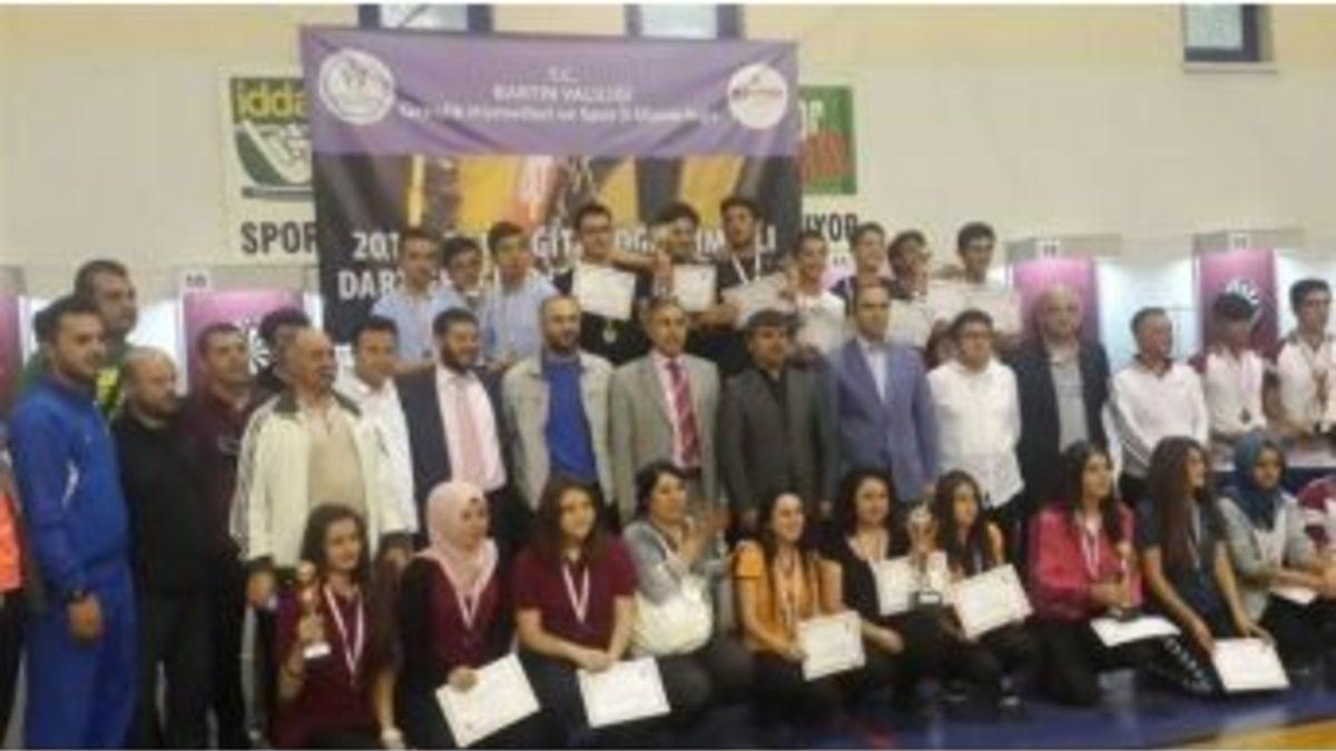Bartın’da düzenlenen Gençler ‘Kız-Erkek Dart Türkiye Birinciliği’ müsabakaları sona erdi.Bartın’da 29 Mayıs’ta Ömertepesi Spor Salonunda yapılan müsabakalara 24 kız takımı 72 sporcu, 25 erkek takımı ve 75 sporcunun katıldı. Müsabakalarda dereceye giren sporcular ödüllerini, Bocce Federasyon Başkan V. Doç. Dr. Mutlu Türkmen, Bartın Üniversitesi BESYO Müdürü Doç. Dr. Murat Kul, Federasyon yönetim kurulu Üyeleri ve Bartın Gençlik Hizmetleri ve Spor İl Müdürü Ali Özdemir’den aldı.