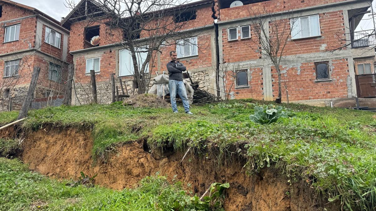 Köy sakinlerinden Volkan Yamaner, yoğun yağışın ardından kar örtüsünün kalkmasıyla evlerinin bulunduğu bahçede toprak kaymasını gördüklerini söyledi.