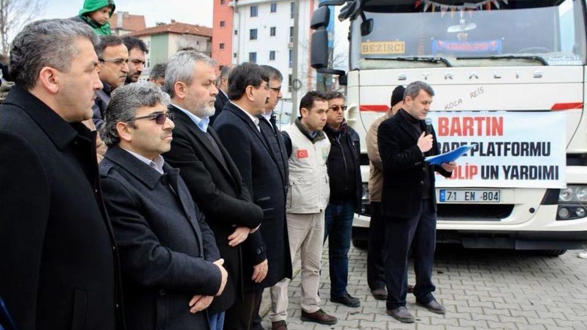 Bartın’da STK’lar tarafından “Suriye’ye acil yardım” kampanyası kapsamında temin edilen 1 tır un, Suriye’ye ulaştırılmak üzere Reyhanlı’ya gönderildi.Bartın’da bir sivil toplum örgütü, Suriye halkına destek olmak için topladığı gıda malzemelerini Reyhanlı’ya gönderdi. STK adına konuşan Mehmet Kuşçu, "Suriye halkının maddi ve manevi yönden arkasında olmamız, hem kulluğumuzun ve ümmet kardeşliğimizin mutlak bir gereği, hem de Türkiye ve ümmetin geleceği için hayati bir önem arz etmektedir. Bu vesile ile emperyalist ABD’yi arkasına alarak yanı başımızda terör ve zulüm düzeni tesis etme hayali kuran taşeron kukla örgütlere karşı, Suriye halkı ve ÖSO güçleriyle birlikte omuz omuza mücadele veren; haksızlığın, adaletsizliğin, zulmün son bulması ve bölgenin özgürleştirilerek güven ortamının tesisi için çarpışan Mehmetçiğin yanında ve destekçisi olduğumuzu bir kez daha beyan ediyoruz" dedi.