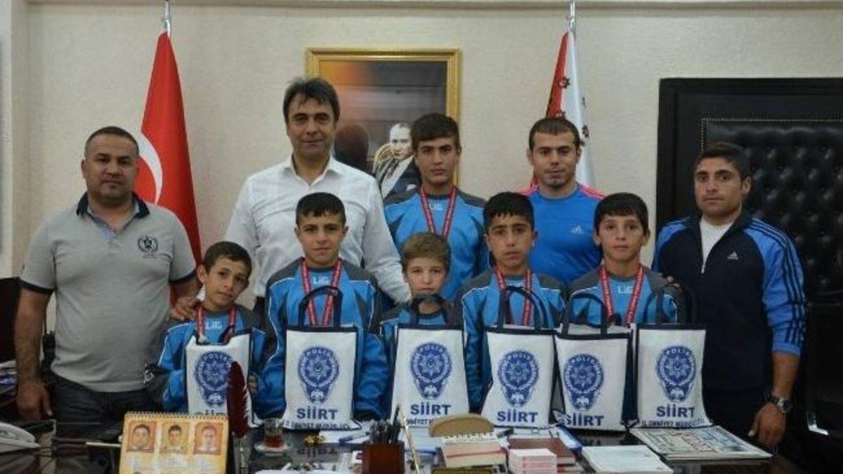 Amatör spora imkanlar ölçüsünde destek çıktıklarını belirten İl Emniyet Müdürü Ekizoğlu, İktisas Kulübü güreşçilerinden 35 kiloda 1’inci olan Abdullah Toprak, 26 kiloda 3’üncü olan Furkan Alak, 32 kiloda 3’üncü olan Firaz Şenduryılmaz, 35 kiloda 3’üncü olan Hakan Kızılarslan’ı tebrik ederek birer tablet bilgisayar hediye etti. Düzenlenen tören, hatıra fotoğrafının çekilmesiyle sona erdi. Törende, Siirt İktisas Kulübü Başkanı ve Avrupa şampiyonu eski milli güreşçi Şakir Kayaalp da hazır bulundu.