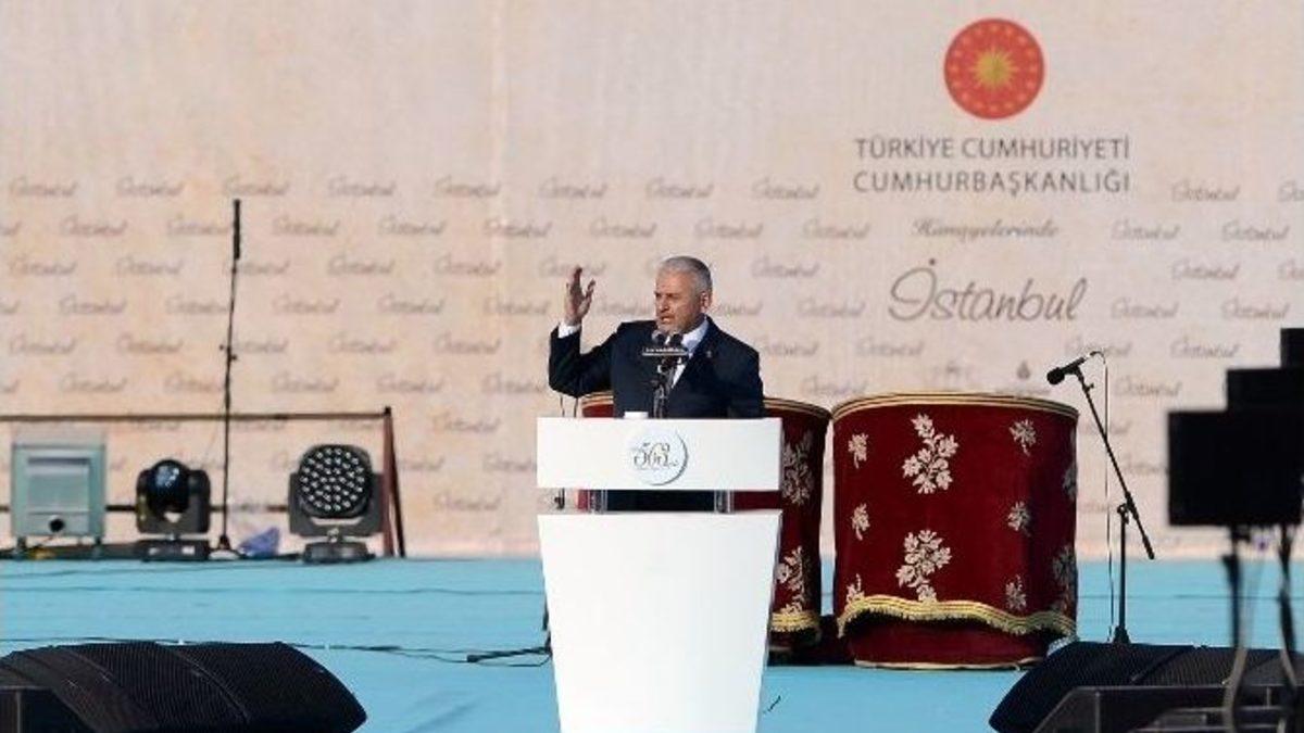 Başbakan Binali Yıldırım, "Bizim inancımızda fetih, hakkın, doğrunun, adaletin, iyiliğin kapısını açmaktır. Fetih benden bize ulaşmak, beni biz içinde eritmektir. Farklılıklarımızı zenginlik saymak, her renkten, her inançtan milletin insanını bir arada barış içinde yaşatmaktır" dedi.İstanbul’un Fethi’nin 563. yıldönümü Yenikapı’da düzenlenen Fetih Şöleni ile kutlanıyor. Törene, Cumhurbaşkanı Recep Tayyip Erdoğan, TBMM Başkanı İsmail Kahraman, Başbakan Binali Yıldırım, İstanbul Valisi Vasip Şahin, İstanbul Büyükşehir Belediye Başkanı Kadir Topbaş ve yüz binlerce İstanbullu katıldı.Şölen, İstanbul Büyükşehir Belediye Başkanı Kadir Topbaş’ın yaptığı açılış konuşmasıyla başladı. Topbaş, “Bu topraklarda işte böyle bir zihniyet var. İşte böyle bir yönetim var. Bu duygularla yoğrulmuş necip milletimizin iradesi var. Özgüveni olmayanlar, korku ve endişe ile yaşayanlar milletine, tarihine yabancı olanlar esasında en büyük güç kaynağından mahrumdurlar. Biz inanıyoruz, biz güveniyoruz, biz milletçe hedefe yürüyoruz. Kimseye özenmiyoruz. Kimseye benzemek gibi bir derdimiz yok. Kadim bir medeniyetin evladıyız. Rüzgar her nereden eserse essin, rüzgar ne olursa olsun kararlı, hedefli ve inançlı duruşumuzu bozmayacağız. Büyük fetihler, büyük hedefler tutan insanların gönlünde açılır. Bu meydanı fetih şuuruyla dolduran yüce gönüllü İstanbullular, işte bu duygularla saygı ve hürmetlerimi arz ediyorum” dedi.Başkan Topbaş’ın yaptığı açılış konuşmasının ardından kürsüye davet edilen İstanbul Valisi Vasip Şahin, “Bugün nebevi ışığın altında karanlık bir çağı kapatıp, insanlığa yeni bir pencere, yeni bir çağ açan muzaffer komutanı Fatih, ordusunu kutlu asker yapan, Konstantin’i İstanbullaştıran, devleti imparatorluğa ulaştıran bir zaferin 563. yıldönümünü idrak ediyoruz. Hepimize kutlu olsun” diye konuştu.Vali Şahin’in ardından kürsüye Başbakan Binali Yıldırım davet edildi. Yıldırım, “Bizleri böylesine mutlu bir günün yıldönümünde buluşturan Cenabı Hakka hamdediyor ve bu büyük fethi bizlere ufuk çizerek, hedef gösteren Sevgili Peygamberimiz Hz. Muhammed (s.a.v.)’e şükranlarımızı sunuyoruz. Buraya teşrif eden, bu güzel günü bizlerle paylaşan siz değerli kardeşlerimizi sevgiyle ve saygıyla selamlıyorum. Siz değerli İstanbullu kardeşlerimize, televizyonları başlarında bizleri izleyen aziz milletime selam ve saygılarımı iletiyorum” diyerek sözlerine başladı."FETİH HAKKIN, DOĞRUNUN, ADALETİN, İYİLİĞİN KAPISINI AÇMAKTIR"Başbakan Yıldırım, “Aziz İstanbullular, bizim inancımızda fetih, hakkın, doğrunun, adaletin, iyiliğin kapısını açmaktır. Fetih benden bize ulaşmak, beni biz içinde eritmektir. Farklılıklarımızı zenginlik saymak, her renkten, her inançtan milletin insanını bir arada barış içinde yaşatmaktır. Adaletin önündeki engelleri ortadan kaldırmaktır. Fethin Çanakkale’de geçilmez, Sakarya Dumlupınar’da işgalcilere kök söktürmek, düşmana haddini bildirmektir. Fetih millet olarak ayağa kalkmak, ufka bakmak, yeniden tarihi yazmaktır. Fetih çağ kapatıp, çağ açmaktır. Fetih mazlumun yanında ve yakınında olmak ve düşeni kaldırmaktır. Ezilen halkların minnet dolu bakışlarına, yürek burkan yakarışlarına dermen olmaktır, çare olmaktır. Diriliş ateşini yakmaktır. Fetih demek, bu necip millete hizmet etmek demektir. Yavuz Sultan Selim Köprüsü’nü yapmaktır. Osman Gazi Köprüsü yapmak iki kıtayı birbiriyle birleştirmek demektir. Diriliş ateşini tutuşturmak, geleceğe umutla, kararlılıkla yürümektir” dedi."DÜNYA MAZLUMLARINA FETİH RUHUNU, İRADE VE ŞUURUNU TAŞIMA ZAMANIDIR"‘Dünya mazlumlarına fetih ruhunu, irade ve şuurunu taşıma zamanıdır’ diyerek sözlerini sürdüren Yıldırım, “Bir zamanlar dünya bizdik. Zulme uğrayan biri bizi hatırlar, bizden yardım isterdi. Her mağdur ilk önce bizi hatırlar, her gözü yaşlı ilk önce bize sığınırdı. Güvenlik bizden sorulur huzur içinde ibadet ve yardım yapılırdı. İstanbul fethedilince nice Hristiyan, Süryani, başka dinlerden insanlara adaletin gülen yüzünü biz tanıttık. Her dilden, her dinden insanlar özgürce yaşardı. Biz insanların şefkatli sığınağıydık. Bizim ecdadımız olmadan adil bir dünya olmazdı. Hz. Ömer, Selahattin Eyyubi gibi büyük fatihler gayrimüslimlere adalet dağıtırken, ilkel dünyaya da insanlık dersi verdiler. Bütün dinler, bütün kültürler, milliyetler, medeniyetler varlıklarını ancak ve ancak bizim kurduğumuz dünyada gerçeğe dönüştürdüler. Bir zamanlar bizler bu misyonu ifa etmenin şerefiyle tarih yazmışız, insanları huzur ikliminde buluşturmuşuz. Düzeni, çarkı, dümeni bozuk dünyaya nizam vermişiz. Azmanlaşan, kibirlenenlere karşı çelik bir iradeyle karşı koymuşuz. Ancak fethin ruhuyla direnerek Çanakkale’de destan yazmış, yedi düvele fetih ruhuyla var oluşun taşlarını döşemişiz. Şimdi yeniden fetih ruhuyla ayağa kalkmanın zamanındır. Dünya lideri, memleket sevdalısı, cumhurun başı, Cumhurbaşkanımız Recep Tayyip Erdoğan’la kenetlenerek, bir ve bütün olarak tarih yazma zamanıdır. Dünya mazlumlarına fetih ruhunu, irade ve şuurunu taşıma zamanıdır. Yedi düvele karşı adaleti ve hakkı söyleme zamanıdır. Dünya halklarının, mazlum ve hakkı gasp edilenlerin dualarını ve desteklerini alarak yeniden kutlu yürüyüşe devam etme zamanıdır. Tarih inancımızın bize yüklediği sorumluluğun gereğini yeniden yapmak, tarihin öznesi olma zamanıdır” diye konuştu."YENİ BİR FETİH RUHU FİLİZLENMESİN DİYE TERÖRÜ BAŞIMIZA BELA ETTİLER"Başbakan Yıldırım, “Yeni bir fetih ruhu filizlenmesin diye terörü başımıza bela ettiler. Devle