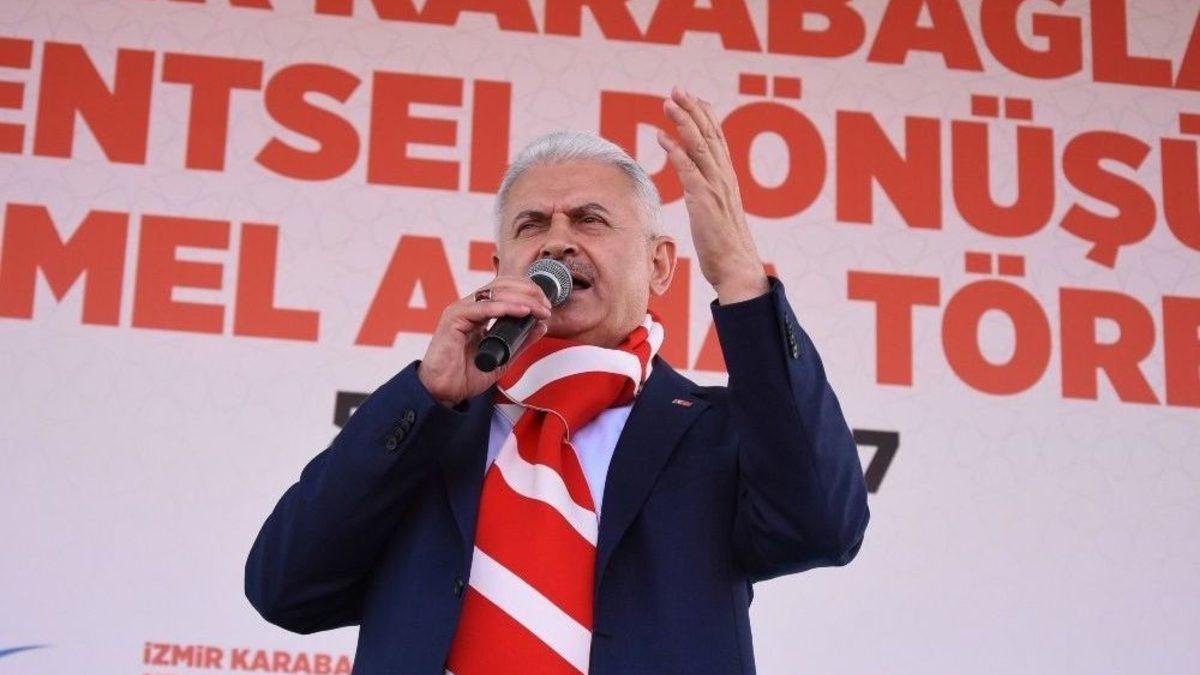 İzmir’de, Karabağlar Kentsel Dönüşüm Projesi Temel Atma Töreninde konuşan Başbakan Binali Yıldırım, bir yandan hizmet ederken bir yandan da şeytan taşladıklarını belirterek, “Bir Türkiye’yi üç Türkiye yaptık. Önümüzde engeller olmasaydı, bugün bir Türkiye, üç Türkiye değil, beş Türkiye olacaktı” dedi.Referandum çalışmaları kapsamında İzmir’de toplu açılış ve temel atma törenlerine katılan Başbakan Binali Yıldırım’ın son durağı Karabağlar Kentsel Dönüşüm Projesi Temel Atma Töreni oldu. Ulaştırma, Denizcilik ve Haberleşme Bakanı Ahmet Arslan, Çevre ve Şehircilik Bakanı Mehmet Özhaseki, Orman ve Su İşleri Bakanı Veysel Eroğlu, İzmir Valisi Erol Ayyıldız, AK Parti İzmir İl Başkanı Bülent Delican ve AK Parti’li milletvekilleri de katıldı.“Engeller olmasaydı üç değil beş Türkiye olacaktı”14 yıldır yurdun her köşesine hizmet götürdüklerini kaydeden Başbakan Yıldırım, “Elimizin değmediği, hizmetimizin gitmediği hiçbir yer yok. 780 bin kilometre vatan toprağının her köşesine yollarıyla, hastaneleriyle, okullarıyla, limanlarıyla, havalimanlarıyla, hızlı demir yollarıyla, bir Türkiye’yi üç Türkiye yaptık. Önümüzde engeller olmasaydı, bugün bir Türkiye, üç Türkiye değil, beş Türkiye olacaktı. Gücümüzün yetmediği bir iş var o da anayasa yoludur. Anayasa yolunu 16 Nisan’da aşmaya hazır mısınız? Bu ‘hayırcılar’ ‘Biz yol istemiyoruz, yolları yapmayın. Arabamız olsun ama yolumuz olmasın. Tek şerit geliş-gidiş yeter’ diyor. Size yeter belki ama millet yol istiyor, millet geleceğin aydınlık Türkiye’sinin inşa edilmesini istiyor” diye konuştu.“Şeytan taşlamaktan vakit bulunca yaptık”Hizmetlerini 14 yıl boyunca devam ettirdiklerini ancak bir yandan da şeytan taşladıklarını söyleyen Başbakan Yıldırım, sözlerini şöyle sürdürdü:“Şeytan taşlamaktan vakit bulunca da yolları, okulları, hastaneleri yaptık. Bu engeller olmasa 27 Nisan elektronik muhtırası, AK Parti kapatma davası, 17/25 darbe girişimi, 15 Temmuz FETÖ darbe girişimi olmasa şimdi Türkiye ne halde olurdu. Bunun üç katı daha gelişmiş olacaktık. Onun için Türkiye’nin bundan sonra herhangi bir sorunla karşılaşmaması için yapmamız gereken artık bu sistemi değiştirmektir. Bu, artık iktidarı kapalı kapılar arkasında değil milletin gözü önünde değişecek. İktidarı siz kuracaksınız, siz indireceksiniz.”“Mevcut sistem problem üretiyor”Mevcut anaysa sisteminin Türkiye’de sürekli problem ürettiğini kaydeden Başbakan Yıldırım, şu ifadelere yer verdi:“Bir dönem geliyor, güçlü iktidarlar oluyor, Türkiye kazanıyor ama bu vesayetçileri, darbe zihniyetindeki kesimler hemen bir yol bulup halkın seçtiği hükümetleri alaşağı ederek, maalesef kazandıklarımız elimizden çıkıp gidiyor. Allah’a şükür 14 yıldır AK Parti iktidarda da, Recep Tayyip Erdoğan iktidarda da, onun arkadaşları iktidarda da istediklerini yapamıyorlar.”“Onların kandilini söndüreceğiz”Başbakan Yıldırım, “Tek adam diye tutturdular. Milletin patron olduğu yerde tek adam olur mu? Padişahlık mı var? Tabii ki yok. Diyorlar ki; ‘bu sitem Erdoğan için.’ Hadi oradan. Bu sistem Erdoğan için değil her doğan içindir. Bu değişiklikle birlikte milletin iktidarına geçiş yapıyoruz. Vesayetten garantili milletin iktidarına geçiş yapıyoruz. Ancak bir bakıyoruz ki; PKK, FETÖ, HDP, Kandil, ne kadar şer güçleri varsa ‘hayır’ çıkması için kendilerini parçalıyorlar. Ne yaparsanız yapın bu millet ‘evet’ diyecek. Kandil’deki terörist başı ‘Çok çalışın hayır çıksın, evet çıkarsa biz biteriz’ diyor. ‘Evet’ çıkacak, siz de biteceksiniz. Onların kandilini söndüreceğiz” açıklamasında bulundu.“Alçak. Sen kimsin?”Konuşmasında CHP’ye yüklenen Başbakan Yıldırım, “Maalesef halkın iradesine, halkın gücüne inanmıyorlar. Bunlar ömrü boyunca hep dumanlı havalarda iş yamayı severler. Çalışarak, milletin desteği alarak iktidar olmak bunların hayali, misyonu değil. Gece-gündüz demeden vatandaşlara sürekli korku, tehdit. Bir milletvekilleri ‘evet’ çıkarsa ‘evetçileri’ İzmir’den denize dökecekmiş. Alçak. Sen kimsin? İzmir sana ne yapacağını bilir. İzmir kimi denize dökeceğini iyi bilir. İzmir Yunanı denize döktü, şimdi teröristleri denize dökecek. Bu milletin başını ağrıtan bütün terör örgütlerinin canına okuyacak. İzmir benim şehrim. Sevgili hemşehrilerim 16 Nisan’da sandıkları doldurmaya var mısınız?” diye sordu. Vatandaşlar hep bir ağızdan "evet" diye yanıt verdi.Bin dönümlük alanKonuşmasında kentsel dönüşüm projesi hakkında da bilgi veren Başbakan Yıldırım, “Karabağlar’da yıllardır hep lafı yapılan ama bir türlü başlanamayan kentsel dönüşüm projesini başlatıyoruz. Hayırlı uğurlu olsun. Bu proje 20 bine yakın İzmirliye yakışan adeta küçük şehir olacak. 4 bin 500 konutuyla, yeşil alanlarıyla, alışveriş merkezleriyle ve her türlü sosyal donatı alanlarıyla Karabağlar’a örnek bir proje. Bin dönümlük alanı dönüşüme tabii tutuyoruz. Bütün İzmir’de 70 bin nüfusa sahip 9 bin 790 adet yapı bulunuyor. Bu alanın büyük bir kısmı 1975’ten sonra başlayan göçle 87 planlarına göre yapılmış ve ne yazık ki hepimiz biliyoruz ki; İzmir’deki yapıların yüzde 60’tan fazlası imarsız, plansız. Şehirciliğe uygun yapılar değil. Bu çarpık yapılaşmayı tersine döndürecek projeyi Karabağlar’da gerçekleştiriyoruz” dedi.600 dönümü yeşil alanİzmir’in deprem bölgesi olduğunu hatırlatan Başbakan Yıldırım, şöyle devam etti:“Dolayısıyla herhangi bir depremde, afette can ve mal kaybı olmaması için mutlaka bu değişimi, bu dönüşümü yapmamı