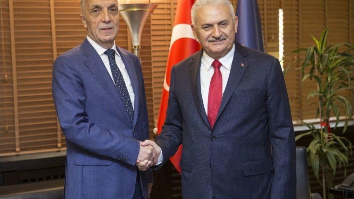 Başbakan Binali Yıldırım, yarın TBMM’de görüşülecek Başbakanlık tezkeresine ilişkin olarak, “Gelen tezkere, Türkiye’nin güney kara hudutları ötesinde ve mücavirinde olabilecek her türlü ülkemiz aleyhine, ülkemiz milli güvenliğini tehdit edecek gelişmelere karşı müdahale hakkını veriyor. Asker gönderme hakkını veriyor. Bu kez de 30 Ekim’den geçerli olmak üzere bir yıl süreyle tekrar yenilenmiş olacak” dedi.Başbakan Yıldırım, Türk-İş Genel Merkezini ziyaretinin ardından çıkışta gazetecilere açıklamalarda bulundu. Görüşmede memleket meselelerini ele alma fırsatları olduğunu belirten Yıldırım, “Başbakan Yardımcısı Bekir Bozdağ, Çalışma ve Sosyal Güvenlik Bakanı Jülide Sarıeroğlu ile çalışma hayatının en büyük sivil toplum kuruluşu Türk-İş’e ziyaret gerçekleştirdik. Sayın Başkan, Yönetim Kurulu üyeleriyle birlikte genel olarak çalışma hayatıyla ilgili memleket meselelerini ele alma fırsatımız oldu. Toplantıya esnaf örgütünün en büyük çatı örgütü TESK, iş adamları ve sanayicilerimizin en büyük çatı örgütü TOBB da katıldı. Kısacası çalışma hayatımızın ve iş camiamızın hemen hemen yüzde 80’inin temsil edildiği büyük bir sivil toplum teşkilatıyla bir arada olduk” ifadelerini kullandı.Yıldırım, açıklamaları sonrası gazetecilerin sorularını cevapladı. Bir gazetecinin taşeron işçilerin görüşmede gündeme gelip gelmediğini sorması üzerine Yıldırım, "Türk-İş’e gelip taşeron konusunu konuşmamak olmaz. Bu konu için hükümet olarak uzun süreden beri Çalışma ve Sosyal Güvenlik Bakanlığımız, Maliye Bakanlığımız ve diğer ilgili bakanlarımız çalışma yürütüyorlar. Muhakkak bu meseleyi gündemden çıkaracağız ve çalışanlarımızı, kamuda çalışan taşeron olarak çalışanların statülerini bir kalıcı esasa bağlayacağız. Çalışmalar, çeşitli alternatifler dikkate alınarak tamamlanmak üzere. Buradaki son tarihimiz, bu yıl çıkmadan bu işe noktayı koymak. Bu yönde de çalışmalar devam ediyor. Önümüzdeki haftalarda Bakanlar Kuruluna gelecek, Ekonomi Koordinasyon Kurulunda görüşülecek, varılan sonuç kamuoyuyla paylaşılacak” cevabını verdi.Irak Kürt Bölgesel Yönetimi’nin yapmayı planladığı referanduma ilişkin soru üzerine Yıldırım, “Kuzey Irak Bölgesel Kürt Yönetimi, 8 Haziran itibarıyla 25 Eylül’de referanduma gitme kararı aldı. Bu kararın dünya kamuoyuna açıklanmasından itibaren Türkiye olarak bunun çok yanlış bir karar olacağını defalarca ifade ettik. Hükümet Sözcümüz, biz, Cumhurbaşkanımız, bunu çeşitli vesilelerle ifade ettik ve kendilerine de bu yanlış karardan vazgeçmelerini defalarca telkin ettik. Geldiğimiz noktada baktığımızda bu karara uluslararası alanda hiçbir destek yok. Ülkelerin hemen hemen tamamı bunun yanlış bir karar olduğunu ve bu referandumun yapılmaması gerektiğini ifade ettiler. Ayrıca Türkiye, Irak, İran komşu üç devlet da bu konuda doğabilecek telafisi imkansız sonuçların olacağını yine Kuzey Irak Bölgesel Yönetimi’ne defaatle anlattık ancak şu ana kadar burada herhangi bir değişiklik yok. Aslında meselenin kaynağı olan Irak Merkezi Yönetimi ile Kuzey Irak Bölgesel Kürt Yönetimi arasında anayasadan kaynaklanan hakların tam anlamıyla uygulanmadığı ve burada merkezi hükümetin, bölgenin beklentilerine karşılık vermediği yönünde şikayet var. Biz bu konuda da gerekli desteği, katkıyı yaparız” şeklinde konuştu.Başbakan Yıldırım, TBMM’de yarın görüşülecek Başbakanlık tezkeresinin kapsamına ilişkin soruya, “Gelen tezkere, Türkiye’nin güney kara hudutları ötesinde ve mücavirinde olabilecek her türlü ülkemiz aleyhine, ülkemiz milli güvenliğini tehdit edecek gelişmelere karşı müdahale hakkını veriyor. Asker gönderme hakkını veriyor. Bu da yine uluslararası sözleşmeler ve BM kararları çerçevesinde. Uzun yıllardan beri bu yenileniyor. Biliyorsunuz PKK ile mücadele ediyoruz, o çerçevede yenileniyor. Bu kez de 30 Ekim’den geçerli olmak üzere bir yıl süreyle tekrar yenilenmiş olacak. Yarın Meclisimiz konuyu enine boyuna değerlendirecek, müzakere edecek ve kararını verecek. Zaman üzerinde durmaya gerek yok. Zaten 30 Ekim’de dolacağı için zamanlıca ve yaşanan gelişmeler dikkate alınarak böyle bir çağrı yapmış olduk” cevabını verdi.TEOG’un kaldırılmasıTEOG’un kaldırılması ve yapılacak yeni düzenlemeye ilişkin soru üzerine Yıldırım, "TEOG bir sistem değildir. Dolayısıyla ortaokuldan liseye geçiş usulünde bir sistem değişikliğine gidilmiyor. Bilinen nedir; TEOG okullarda yapılan yazılı sınavların her sömestr birer tanesinin merkezi yapılması. Yani Ankara tarafından bütün okullarda yapılması. Dolayısıyla bunun yerine yine okullarda sınav yapılmaya devam edilecek ve ortaokuldan liseye geçiş veli, okul, öğrenci ve öğrencinin ilkokuldan orta sona kadar ilk 8 yıllık başarı durumları dikkate alınarak lisede hangi tarafa yönlendirileceğine karar verilecek. Dolayasıyla TEOG yerine geçecek uygulamayla ilgili Milli Eğitim Bakanlığımız çalışmaları alternatifli olarak sürdürüyor. Bu Bakanlar Kurulunda görüşülmeyecek ama daha sonraki Bakanlar Kurulunda konuyu görüşmüş olacağız. Ben burada velilere, anne babalara şunu söylemek isterim; hiçbir şekilde yavrularımızın, velilerin mağduriyetine yol açacak bir uygulamaya fırsat vermeyeceğiz, böyle bir endişe olmasın” dedi.İstanbul Büyükşehir Belediye Başkanı Kadir Topbaş’ın istifa ettiği yönündeki iddialara ilişkin ise Yıldırım, “Bu konuda bugün içerisinde Kadir Bey bir açıklama yapacak” karşılığını verdi.