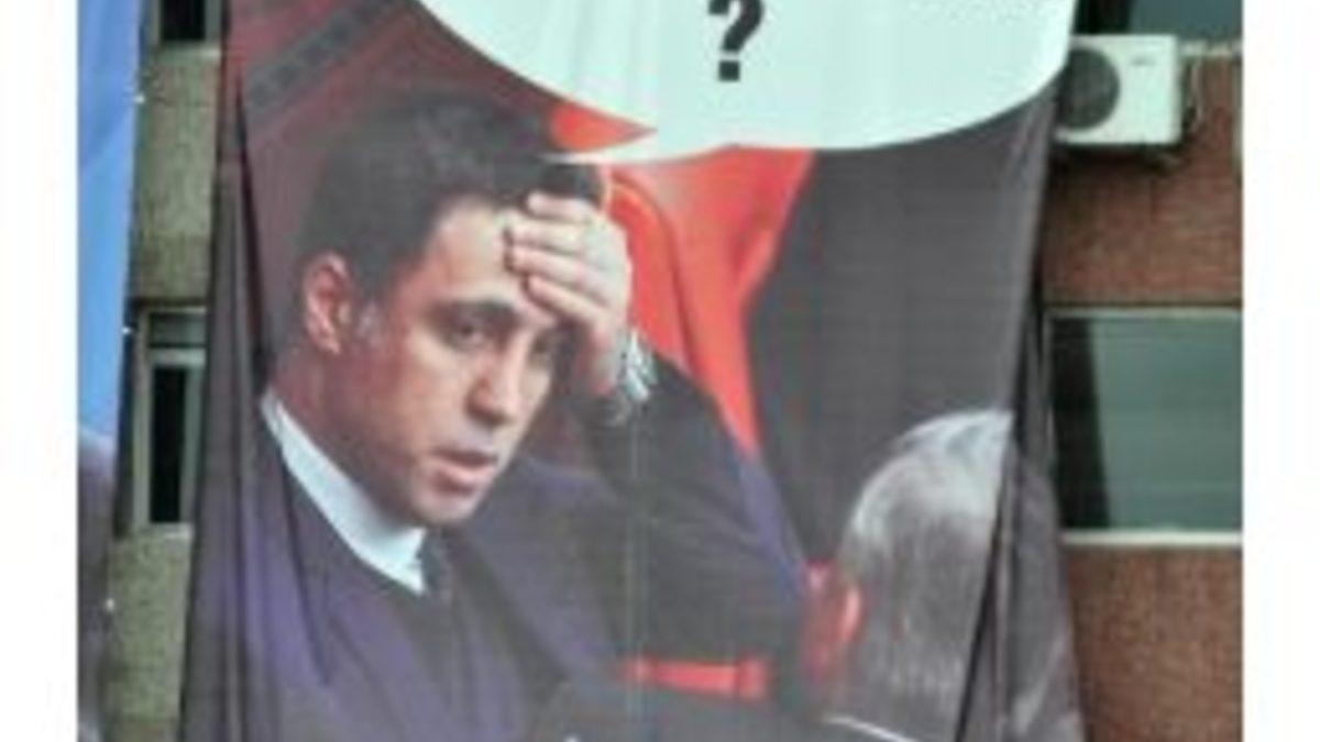 Cumhurbaşkanı adayı ve Başbakan Recep Tayyip Erdoğan'ın Sakarya mitingi öncesi meydandaki Hakan Şükür'le ilgili pankart...