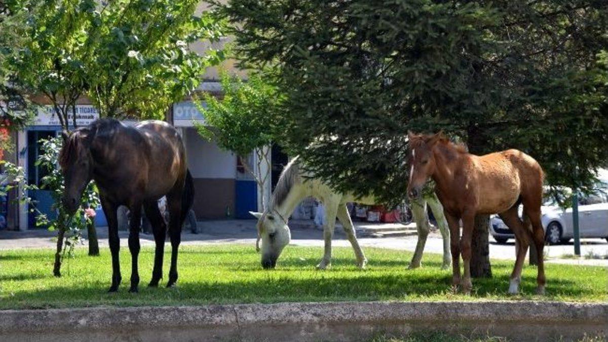 Çorlu’da trafik akışının olduğu bölgelerde başı boş bir şekilde gezen atlar araç sürücülerine tehlike oluşturuyor.