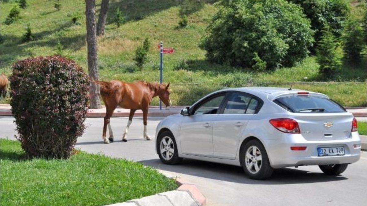 Edirne’de sokak ve caddelerde başıboş dolaşarak trafiği tehlikeye düşüren atlar, belediye ekiplerinin tüm uyarılarına rağmen sahipleri tarafından tekrar sokağa bırakılıyor.