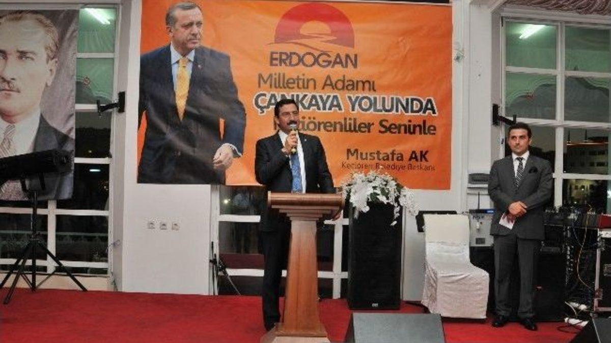 Keçiören Belediye Başkanı Mustafa Ak, AK Parti Genel Başkanı ve Başbakan Recep Tayyip Erdoğan’ın Cumhurbaşkanı adaylığını açıklama töreni için Türkiye’nin birçok ilinden Ankara’ya gelen vatandaşlara iftar verdi.Halil İbrahim Sofrası’ndaki iftar yemeğine AK Parti Genel Başkan Yardımcısı Numan Kurtulmuş ve Keçiören Belediye Başkanı Mustafa Ak da katıldı. Kur’an-ı Kerim tilaveti ile başlayan iftar programında konuşan Numan Kurtulmuş, “Bugün ATO salonundaki adaylık açıklaması için İstanbul ve Türkiye’nin birçok yerinden gelen sevgili kardeşlerim için iftar yemeği düzenleyerek ev sahipliği yapan kardeşim Mustafa Ak’a teşekkür ederim” dedi.YENİ CUMHURBAŞKANIMIZ DA KEÇİÖREN’DE OTURSUNTürkiye’nin önemli günlerden geçtiğini ifade eden Kurtulmuş, 10 Ağustos 2014 tarihine dikkat çekerek, “Milletimizin oylarıyla Cumhurbaşkanımızı seçeceğiz. Biz de birinci turda Genel Başkanımızın Cumhurbaşkanı seçileceğine inanıyoruz. 17-25 Aralık operasyonlarına set çeken milletimiz Başbakanımızı büyük bir oy farkla Cumhurbaşkanlığı koltuğunu oturtacaktır” diye konuştu.Belediye Başkanı Mustafa Ak ise, düzenledikleri iftarın asıl ev sahibinin Başbakan Erdoğan olduğunu söyleyerek, “Bugün Türk siyasi hayatında büyük bir güne şahitlik ettik. Türkiye’nin dört bir yanından misafirlerimiz geldi. AK Parti Cumhurbaşkanı adayını açıkladı. Genel Başkanımız, dünya lideri Recep Tayyip Erdoğan Cumhurbaşkanı adayı oldu. Biz ilk turda Recep Tayyip Erdoğan’ın büyük bir farkla kazanacağına inanıyoruz” ifadelerini kullandı.Başbakan Erdoğan’ın 12 yıldır Keçiören’de, halkının arasında oturduğunu hatırlatan Başkan Ak, “Keçiörenliler Başbakanımızın Cumhurbaşkanı olduktan sonra da Keçiören’de oturmasını istiyorlar” mesajını verdi.