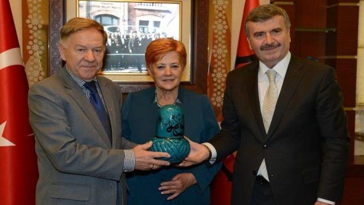 Saraybosna Büyükşehir Belediye Başkanı İvo Komsiç, Konya Büyükşehir Belediye Başkanı Tahir Akyürek’i ziyaret etti.Mevkidaşını Mevlana Kültür Merkezi’nde ağırlayan Konya Büyükşehir Belediye Başkanı Tahir Akyürek, Konya ile Saraybosna’nın kardeş şehirler olduğunu belirterek, her iki şehrin de birbirinde hatıraları olduğunu söyledi.Başkan Akyürek, “Bosna-Hersek, Hırvatistan, Kosova, Sırbistan gibi ülkelerin hem tarihi hafızalarımızda izleri var, hem de bir yakınlığımız var. Saraybosna Belediye Başkanlarını hemşerimiz sayıyoruz” dedi.KARDEŞLİĞİMİZ DEVAM EDECEKKendilerini Konya’da misafir gibi hissetmediklerini dile getiren Saraybosna Büyükşehir Belediye Başkanı İvo Komsiç ise, kendinden önceki belediye başkanlarından devraldıkları kardeşlik ilişkilerini sürdüreceklerini kaydetti. Komsiç, “Sizlerin sadece Saraybosna için değil, Bosna-Hersek için yaptıklarınızı biliyor ve takdir ediyoruz. Sizin yardımlarınız savaş başladığı günden itibaren devam ediyor. En son da heyelan döneminde ciddi bir yıkım başladı. Orada da bizi yalnız bırakmadınız. Sizin bu kardeş, abi ilginizi hissediyoruz” diye konuştu. Bosna-Hersek’te bulunan Mevlevihanelerde Mesnevi derslerinin devam ettiğine değinen Komsiç, Mevlana Celaleddin Rumi’nin felsefesinin ve öğretisinin, Bosna-Hersek’te ve tüm dünyada hala ayakta kalmasının önemli olduğunu dile getirdi. Bosna Hersek Fahri Konsolosu, Büyükşehir Belediyesi Genel Sekreter Yardımcısı Ercan Uslu’nun da bulunduğu ziyaretin sonunda Konya Büyükşehir Belediye Başkanı Akyürek, Komsiç’e çini sikke hediye ederken Komsiç de Başkan Akyürek’e Türkiye’nin desteğiyle onarılan ve şehrin simgesi haline gelen kütüphane ile köprünün resmedildiği bakır tablo armağan etti.