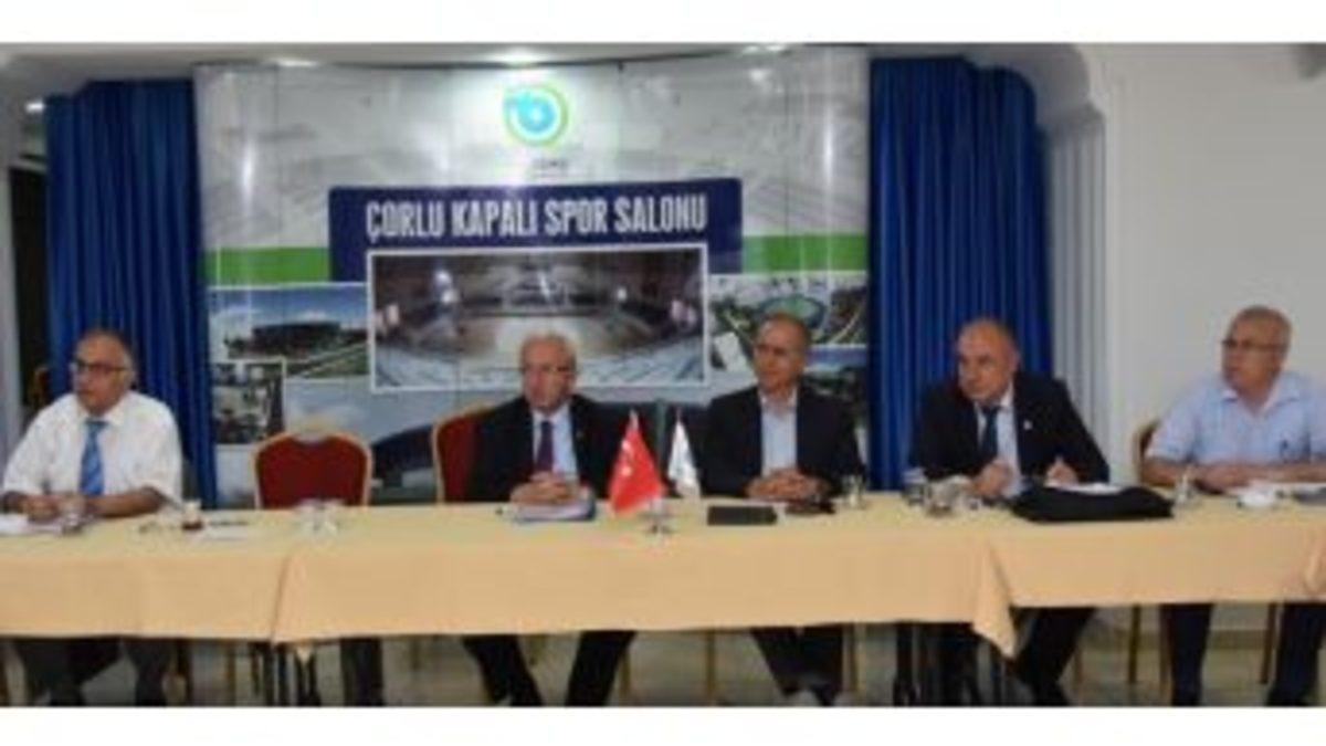 Tekirdağ Büyükşehir Belediye Başkanı Kadir Albayrak, Çorlu İlçesinde gerçekleştirilen alt ve üst yapı yatırımlarının değerlendirildiği toplantıya katıldı. Başkan Albayrak toplantıda, Çorlu’da geçtiğimiz hafta etkili olan sağanak yağmurun ardından sıkıntı yaşanan bölgelerde alınabilecek tedbirler konusunda da kurmayları ile değerlendirmede bulundu.Çorlu Belediyesi Toplantı ve Konferans Salonunda gerçekleştirilen gerçekleşen toplantıda Tekirdağ Büyükşehir Belediye Başkanı Kadir Albayrak’ın yanı sıra Tekirdağ Büyükşehir Belediyesi Genel Sekreter Yardımcıları Prof. Dr. Tamer Dodurka ve Mehmet Zeki Gürcün, Fen İşleri Daire Başkanı Metin Pakdil, TESKİ Genel Müdürü Dr. Şafak Başa, TESKİ Genel Müdür Yardımcısı İbrahim İçöz ile Çorlu Belediye Başkanı Ünal Baysan yer aldı.Toplantıda, Tekirdağ Büyükşehir Belediyesi ve TESKİ tarafından Çorlu ilçesinde gerçekleştirilen yatırım ve projeler ele alındı ve ilçede gelecek dönemde yapılması planlanan projeler hakkında da görüş bildiren katılımcılar, Çorlu’da son dönemde etkili olan sağanak yağmurların ardından su baskınları yaşanan bölgelerde alınabilecek tedbirler konusunda da görüş alışverişinde bulundu.