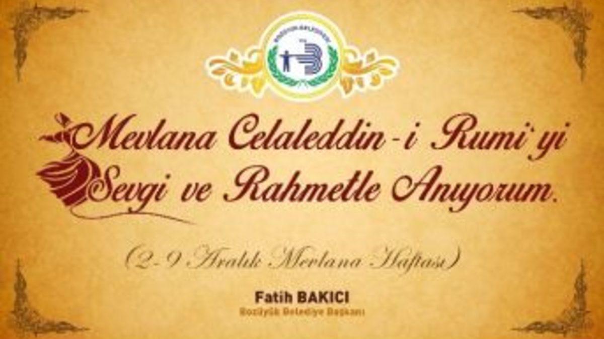Bilecik Bozüyük Belediye Başkanı Fatih Bakıcı, 2-9 Aralık Mevlana Haftası münasebetiyle mesaj yayımladı.Başkan Bakıcı, mesajında, her dilden, her dinden, her renkten insanı kucaklayan Anadolu’nun en önemli manevi mimarlarından olan Mevlâna Celâleddin Rûmî’nin sevginin, barışın, kardeşliğin ve hoşgörünün sembolü olduğunu belirtti.Mesajında “Büyük mutasavvıf Hz. Mevlana, 13. yüzyılda tüm insanlığa yaptığı çağrıyla, aşk, sevgi, hoşgörü ve birlik olmaya dayanan bir hayat felsefesinin yerleştirilmesinde önemli bir rol oynamıştır” ifadelerini kullanan Başkan Bakıcı; “Hz. Mevlana’nın ’Ne olursan ol yine gel’ söylemi bunun en büyük göstergesidir. ’Ya olduğun gibi görün, ya da göründüğün gibi ol’ diyerek insanlığı doğruluğa ve dürüstlüğe ve çağırmıştır. Hz. Mevlana’nın değerinden hiçbir şey kaybetmemiş bu evrensel öğretileri, dünyamızı ışığıyla aydınlatmaya devam etmektedir. Onun sevgi ve hoşgörüye dayalı felsefesini ve öğretisini herkesin örnek alması umuduyla, insanlığa ahlak, din, ilim ve akıl yolunda heyecan katarak yeni ufuklar açan Mevlana Celaleddin-i Rumi’yi sevgi ve rahmetle anıyoruz” diye belirtti.