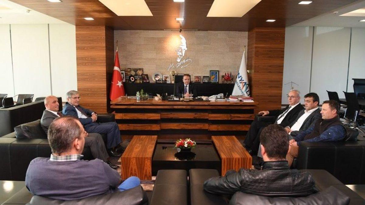 Konyaaltı Belediye Başkanı Muhittin Böcek, Belediye-İş Sendikası Genel Başkanı Nihat Yurdakul’u ağırladı.Belediye-İş Sendikası Genel Başkanı Nihat Yurdakul beraberindeki heyetle birlikte Konyaaltı Belediye Başkanı Muhittin Böcek’i ziyaret etti. Yurdakul’un ziyaretinde kendisine Belediye-İş Sendikası Genel Başkan Yardımcısı Erdoğan Kefeli ve Belediye-İş Sendikası Antalya Yönetimi de eşlik etti. İşçi sözleşmelerinin görüşüldüğü dönemlerde Konyaaltı Belediyesi’nde tüm taleplerinin büyük ölçüde kabul edildiğine dikkat çeken Nihat Yurdakul, bu anlamda her zaman işçinin yanında olduğunu hissettiren Başkan Böcek’e teşekkür etti.Belediye-İş Sendikası Antalya Yönetimi’yle sık sık bir araya geldiklerini dile getiren Muhittin Böcek, işçinin alın teri kurumadan hakkının verilmesini her zaman vazife edindiğini belirterek, Konyaaltı Belediyesi’nde taşeronlar da dahil tüm çalışanların haklarını günü gününe ödediklerini bildirdi. Belediye-İş Sendikası Genel Başkanı Nihat Yurdakul’un yaptığı ziyaretten son derece memnun kaldığını belirten Başkan Böcek, sendikal hareketin çalışanların haklarının savunulması bakımından son derece önemli gördüklerini bir kez daha vurguladı.