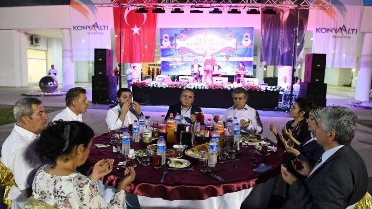 Konyaaltı Belediye Başkanı Muhittin Böcek, ilçe protokolünün bir araya geldiği iftar yemeği düzenledi.Konyaaltı Belediyesi önünde gerçekleşen geleneksel iftar yemeğine Konyaaltı Kaymakamı İbrahim Keklik, CHP Konyaaltı İlçe Başkanı İlhan Buğdaycı, Belediye meclis üyeleri, muhtarlar, Antalya Konyaaltı Turizm Kültür ve Eğitim Vakfı (KONTEV) üyeleri, Batı Antalya Turizm Koruma ve Geliştirme Bölgesi Altyapı Hizmet Birliği (BATAB) üyeleri, Konyaaltı Kaymakamlığı birim müdürleri, Konyaaltı Belediyespor temsilcileri ve şehit aileleri ve gazilerin katıldığı iftar yemeği düzenledi. Konyaaltı Belediye Başkanı Muhittin Böcek, iftara katılan misafirlerle tek tek ilgilendi.Ezan sesinin duyulmasıyla orucunu açan davetliler, yemek boyunca süren semazen gösterisi ve Tasavvuf Müziği dinletisiyle keyifli bir zaman geçirdi. Konyaaltı Belediye Başkanı Muhittin Böcek, birlik ve beraberlik duygusunun en yoğun şekilde yaşandığı Ramazan’da bir geleneği daha yerine getirmenin mutluluğunu yaşadıklarını söyledi. Başkan Böcek, “Bugün burada Konyaaltı’nın gelişmesinde katkı sunan siz değerli konuklarımızla bir aradayız. Bütün kurum kuruluşlarımızla Konyaaltımız için hep birlikte çalışıyoruz. Bu birlik ve beraberliğimiz hiç bozulmasın” dedi.Tasavvuf Müziği ve semazen gösterisi eşliğinde iftarını yapan davetliler, gece sonunda Başkan Böcek’e teşekkür etti.