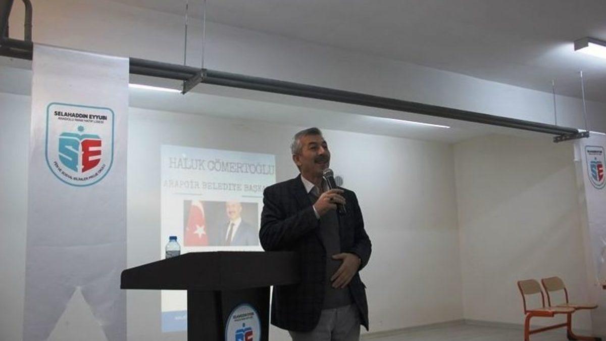 Arapgir Belediye Başkanı Haluk Cömertoğlu, Selahaddin Eyyubi Anadolu İmam Hatip Lisesinde düzenlenen ‘Kent Sorunları ve Yerel Yönetimler’ konulu konferansa konuşmacı olarak katıldı.Malatya Selahaddin Eyyubi Anadolu İmam Hatip Lisesi’nde düzenlenen konferansa katılan Belediye Başkanı Haluk Cömertoğlu, proje okulu öğrencilerine yerel yönetimler ile ilgili bilgiler verdi. Başkan Cömertoğlu’nun konuşmacı olarak katıldığı konferansa Okul Müdürü Mikail Çirkin, okul öğretmenleri ve öğrenciler katıldı. Başkan Haluk Cömertoğlu, belediyecilik hizmetinin ilk aşamasından projenin değerlendirilip ortaya koyulmasına kadar birçok konuya değindi. Yerel yönetimlerin yapısı ve işleyişi konusunda proje okulu öğrencilerine bilgiler aktaran Başkan Cömertoğlu, kentleşmede planlamanın önemine değinerek kentlerin planlı bir şekilde ele alınması gerektiğini ifade etti.Konferans sonunda öğrencilerin yerel yönetimler ile ilgili sorularına açıklık getiren Başkan Cömertoğlu, kendisini konferansa davet eden Okul Müdürü Mikail Çirkin’e ve öğrencilere teşekkür etti.