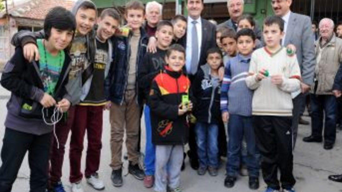 Gezi sırasında kendisini selamlayan çocuklara topaç hediye eden Başkan Dündar, çocukların topaçları büyük bir beceri ile çevirdiklerini görünce, bir süre onları izleyip çocuklarla birlikte fotoğraf çektirdi.