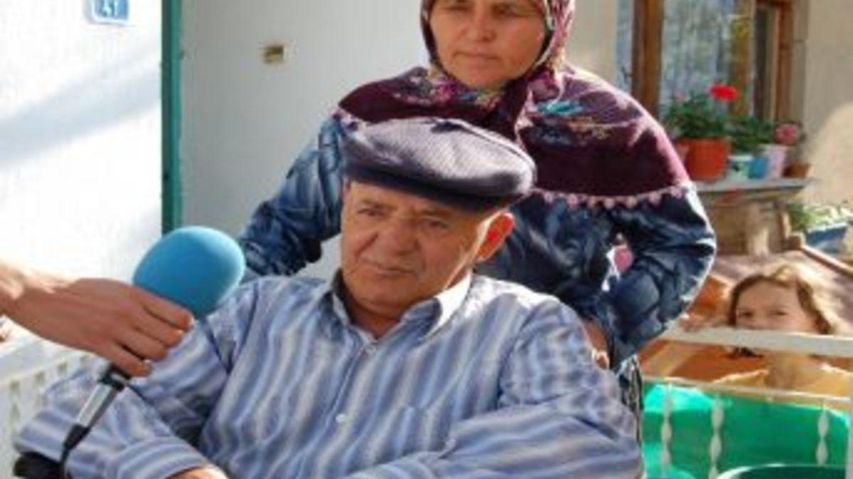 Kütahya Simav Belediye Başkanı Kasım Karahan, tekerlekli sandalye hediye ettiği bağ-kur emeklisi engelli bir vatandaşı...