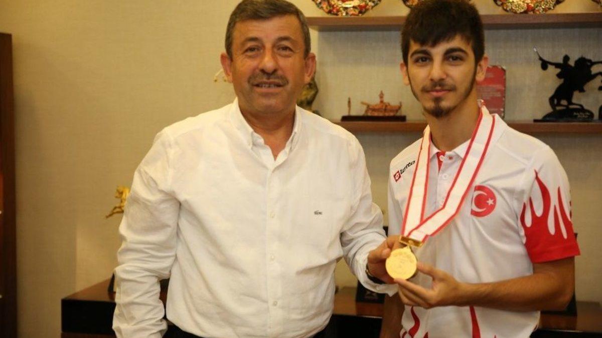 Japonya’nın Kobe kentinde düzenlenen 11. Dünya Üniversiteler Karate Şampiyonası’nda altın madalya kazanan Darıca Belediyesi Eğitim ve Spor Kulübü’nün Milli Sporcusu Eray Şamdan, Darıca Belediye Başkanı makamında ziyaret ederek katkı ve desteklerinden dolayı teşekkür etti.Darıca Belediyesi Eğitim ve Spor Kulübü Başkanı Bekir Güven ile Kulüp Antrenörü Adnan Şamdan’ında bulunduğu ziyarette Milli Sporcu Eray Şamdan’ı tebrik ederek başarılarının devamını dileyen Başkan Karabacak, “Darıca Belediyesi Eğitim ve Spor Kulübü bünyesinde gerek karatede ve gerekse atletizmde ulusal ve uluslararası arenada önemli başarılar elde ettik. Bunun yanı sıra ilçemizde düzenlediğimiz Balkan Kros Şampiyonası, Avrupa Gençler Yüzme Yarışları, Türkiye Kros Şampiyonası ve Uluslararası Darıca Yarı Maratonu gibi uluslararası organizasyonlar, gençlere yönelik düzenlediğimiz DASYİS (Darıca Sporun Yıldızlarını Seçiyor) ve Yaz ve Kış Spor Okulları ile spora her daim katkı sunduk, sunmaya devam ediyoruz. Spora yaptığımız yatırımlar devam edecek, Eray gibi al bayrağımızı dünyanın dört bir yanında dalgalandıran nice Dünya Şampiyonalarını yetiştireceğimizden şüphemiz yok. Eray kardeşimizle birlikte esas hedefimiz Tokyo Olimpiyatları” şeklinde konuştu.