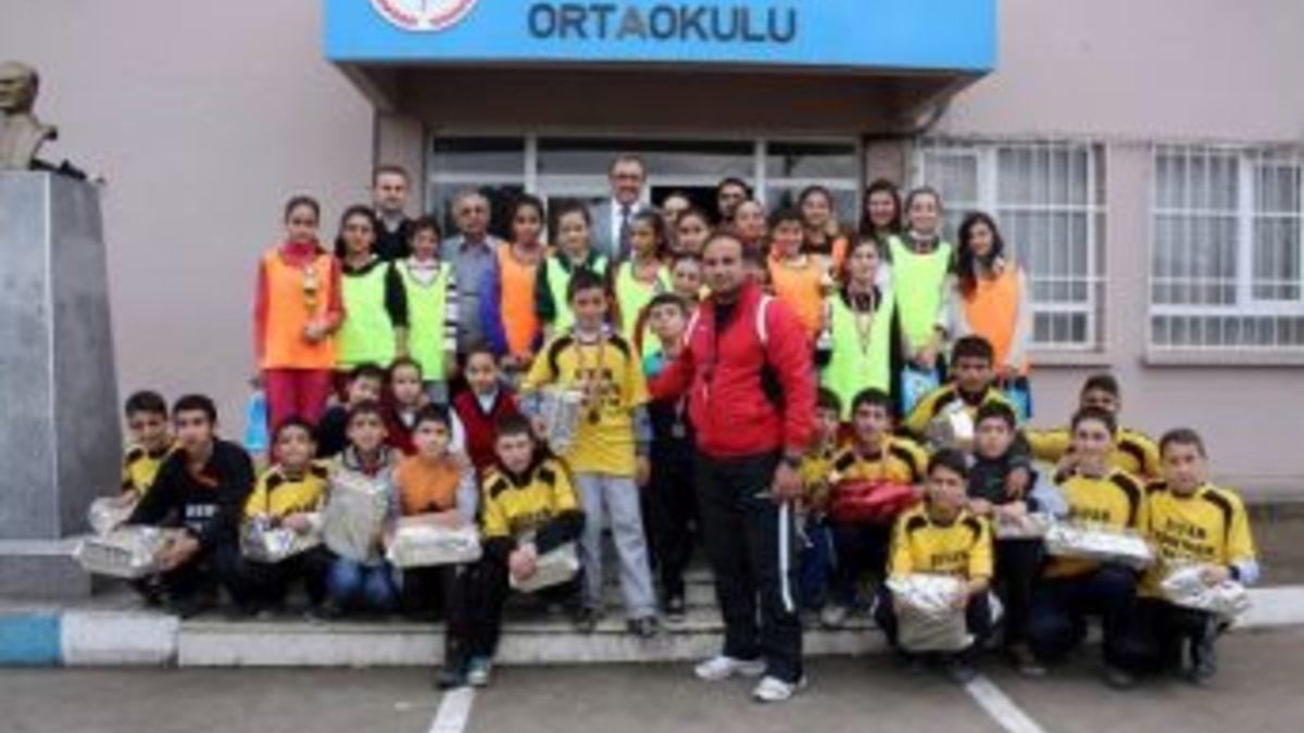 Manisa Alaşehir Belediye Başkanı Dr. Gökhan Karaçoban, Manisa’da 27 Aralık 2013 tarihinde düzenlenen Büyük Atatürk Koşusu’nda Manisa 1.’si olan Osman Akça Ortaokulu öğrencilerini ödüllendirdi.Osman Akça Ortaokulu’nu ziyaret eden Karaçoban, Manisa’da yapılan Büyük Atatürk Koşusu’nda 3’ü özel olmak üzere toplamda 29 okul arasından Yıldız Erkekler, Yıldız Kızlar ve Küçük Kızlar kategorisinde kupa kazanarak Alaşehir’e ve okullarına büyük bir sevinç yaşatan Osman Akça Orta Okulu, Atletizm kadrosu öğrencilerini tek tek tebrik etti ve her bir sporcuya ödüllerini verdi. Karaçoban, Okulun Beden Eğitimi Öğretmeni Himmet Efe Cengiz’i de tebrik ederek kendisine başarılarından dolayı bir plaket verdi. Osman Akça Ortaokulu’nun atletizm branşında elde ettiği başarıları yakından takip ettiğini belirten Belediye Başkanı Dr. Gökhan Karaçoban, “Manisa’da 27 Aralık 20013 tarihinde düzenlenen Büyük Atatürk Koşusu’nda elde edilen başarılarınız hem okulunuz açısından hem de Alaşehir açısından mutluluk verici. Başarılarınızdan dolayı tüm sporcularımızı ve Beden Eğitimi Öğretmenimiz Himmet Efe Cengiz’i tebrik ediyor, başarılarınızın devam etmesini diliyorum” dedi.