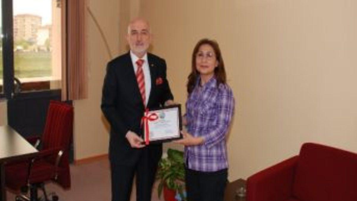 Başkan Kefeli, Canak Kesici'ye plaket taktim etti.