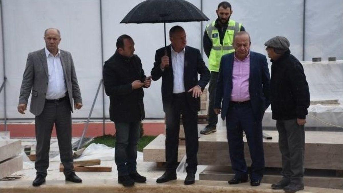 Düzce Belediye Başkanı Mehmet Keleş, 15 Temmuz Şehitleri Parkı’nda yapımı devam eden “Konuralp Çeşmesi” için yapılan çalışmaları inceledi.Düzce Belediye Başkanı Mehmet Keleş kısa süre önce yapımı tamamlanan ve bünyesindeki kafeteryalarla birlikte hizmete sunulan 15 Temmuz Şehitleri Parkı içinde yapımı devam eden “Konuralp Çeşmesi”ni inceledi. Büyük bir kısmı tamamlanan çeşmede sıra Konuralp Bey temalı fon bloklarının takılmasına gelirken Başkan Keleş, çalışmalar hakkında yetkililerden bilgi aldı. Çeşmenin ön kısmına takılacak fon bloklarının malzemesi ve konumunu inceleyen Başkan Mehmet Keleş, çeşmenin tamamlanması için çalışmaların hızlanması için talimat verdi.
