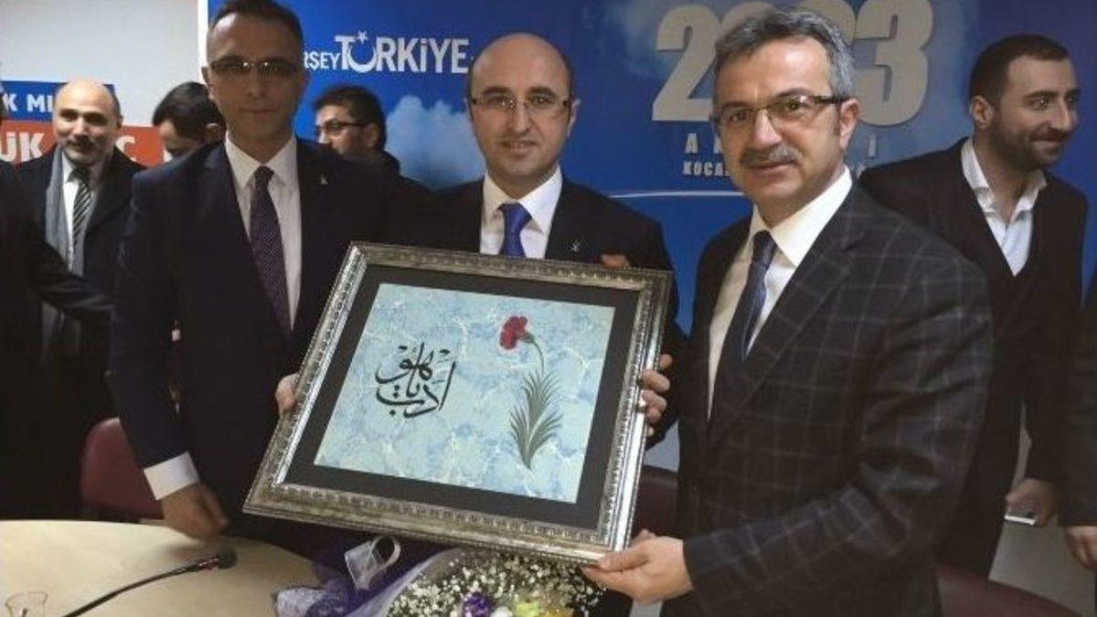 Gebze Belediye Başkanı Adnan Köşker, yeni yapılan kongrede seçilen Ak Parti Kocaeli İl Başkanı Şemsettin Ceyhan’a hayırlı olsun ziyaretinde bulundu.Gebze Belediye Başkanı Adnan Köşker, Ak Parti Genel Başkanı ve Başbakan Ahmet Davutoğlu’nun katılımıyla önceki hafta yapılan olağan kongrede Kocaeli il başkanlığı görevini Mahmut Civelek’ten devralan Şemsettin Ceyhan’ı ziyaret etti. Ak Parti Kocaeli İl Başkanı Şemsettin Ceyhan’a hayırlı olsun temennilerini ileten Gebze Belediye Başkanı Adnan Köşker, “Sayın başkanımıza çalışmalarında başarılar dilerim. Rabbim yar ve yardımcısı olsun. Teşkilatlarımızla kentimizin, insanımızın hizmetkarı olan büyük ve ak bir aileyiz. Durmak yok yola devam. Durmak yok hizmete devam diyoruz. Hayırlı uğurlu olsun inşallah” dedi.Başkan Köşker, İl Başkanı Şemsettin Ceyhan’a GESMEK kursiyerleri tarafından özel olarak yapılan bir hat tablosu takdim etti.