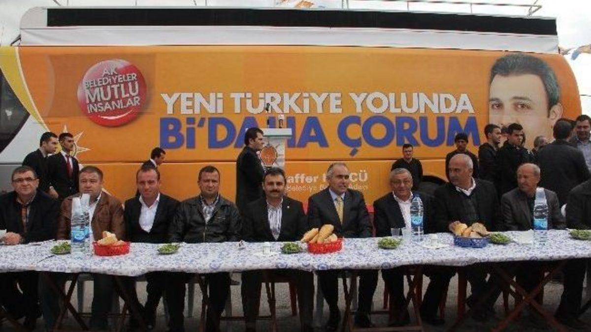 Çorum Belediye Başkanı ve AK Parti Belediye Başkan Adayı Muzaffer Külcü, seçim çalışmaları kapsamında Küçük Sanayi Sitesini ziyaret etti.Küçük Sanayi Sitesi esnafı tarafından düzenlenen yemeğe katılan Başkan Muzaffer Külcü, site esnafıyla bir araya geldi. AK Parti Merkez İlçe Başkanı Mustafa Köse ve AK Parti Belediye Meclisi Üyesi adaylarıyla birlikte sanayiye çıkarma yapan başkan Külcü, esnaf sofrasında yemek yedi ve 30 Mart seçimlerinde yeniden destek istedi.Yemekte bir konuşma yapan AK Parti Merkez İlçe Başkanı Mustafa Köse, Başbakan ve AK Parti Genel Başkanı Recep Tayyip Erdoğan’ın Çorum halkının isteği üzerine Muzaffer Külcü’yü yeniden belediye başkan adayı gösterdiğini ifade ederek, Külcü’nün görevde olduğu 5 yıllık sürede ‘Esnaf dostu’ bir belediyecilik anlayışı sergilediğini kaydetti.5 yıllık belediye icraatlarından övgü dolu sözlerle bahseden Köse, 30 Mart seçimlerinde partisi ve belediye başkan adayı Muzaffer Külcü’ye destek istedi.Esnafın toplumun çimentosu, milletin birlik ve dirliğinin en önemli sigortalarından birisi olduğunun altını çizen Köse, özellikle son dönemde milletimiz üzerinde bir takım oyunlar oynandığına dikkat çekerek, esnaf ve sanatkarlardan bu oyunlara karşı uyanık olmalarını istedi.Ülke üzerinde oynanan oyunun asıl hedefinin 12 yıldır ülkede devam eden birlik, dirlik, refah ve huzurun bozulmasına yönelik olduğunu ifade eden Köse, “Milletimiz bu oyuna asla izin vermeyecek ve oynanan oyunu bozacaktır. Ülkedeki birlik ve dirliği daha güçlü hale getireceğiz. Ülkede 2002 yılından itibaren Recep Tayyip Erdoğan ile birlikte hizmet ve refah arttı, ekonomi büyüdü” dedi.Özellikle son 5 yıldır Türkiye’de olduğu gibi Çorum’da da büyük bir değişim ve dönüşüm yaşandığının altını çizen Köse, “Çorum’un çehresi değişti. Bu değişim sadece altyapıyla sınırlı kalmadı birçok alanda ciddi hizmetler yapıldı. Ben buna şahidim” ifadesini kullandı.Belediye Başkanımız esnaf dostu bir başkan ve buna şahidiz. Başkanımız, taksi duraklarını yenileyerek Türkiye’ye örnek bir çalışmaya imza attı. Sanayi esnafını küçük ödemelerle dükkan sahibi yaptı.İkinci dönem içinde Çorumlular istedi ve Başbakanımız Recep Tayyip Erdoğan sizlerin bu isteğine karşılık vererek ‘durmak yok Külcü ile yola devam’ dedi. Çorum halkı aklıselimdir. Geçtiğimiz seçimlerde doğruda ittifak etti. 30 Mart seçimlerinde de mutlaka doğruda ittifak edecektir. 30 Mart seçimlerin de Külcü, ikinci dönemine devam edecektir” şeklinde konuştu.Esnaflara hitap eden Belediye Başkanı Muzaffer Külcü, projeleri hakkında açıklamada bulundu.