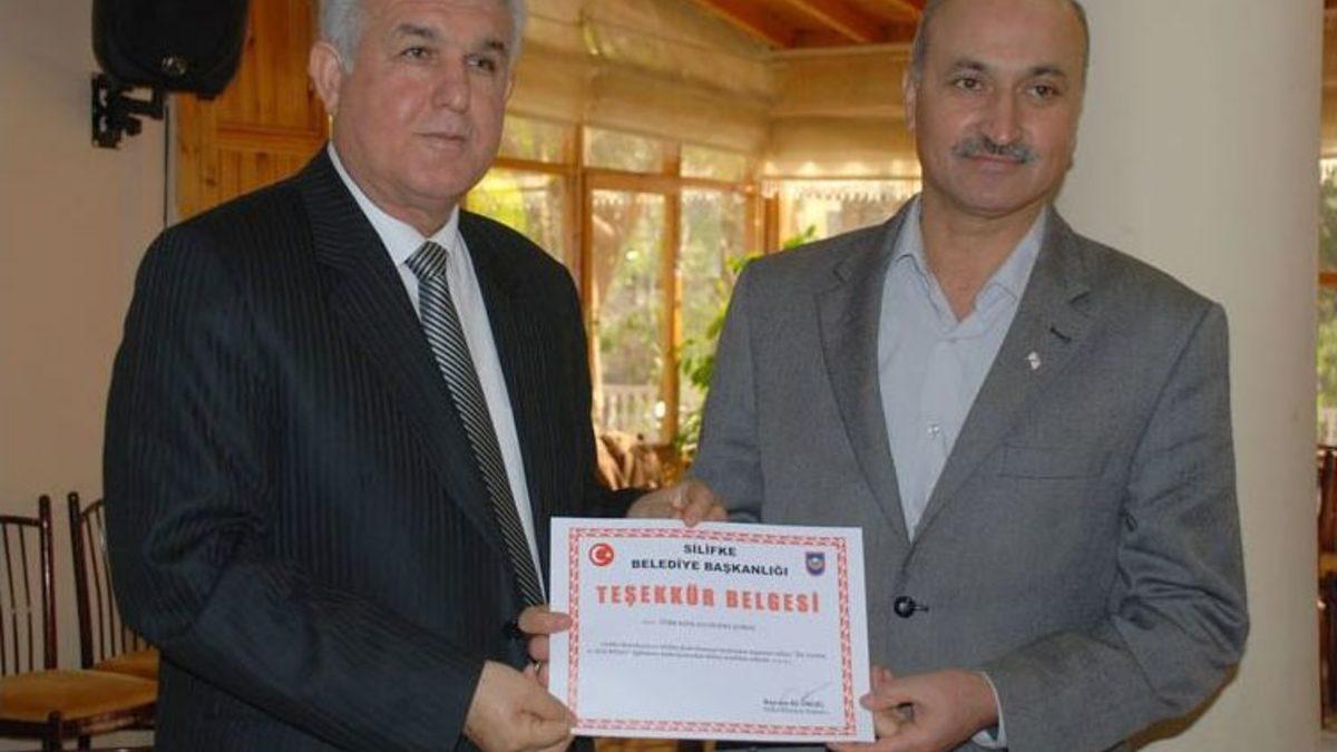 Eğitime katkı sunan Türk Kızılayı Silifke Şube Başkanı Mustafa Beceren ve eğitimci Hasan Bilir'e teşekkür belgesi verildi.