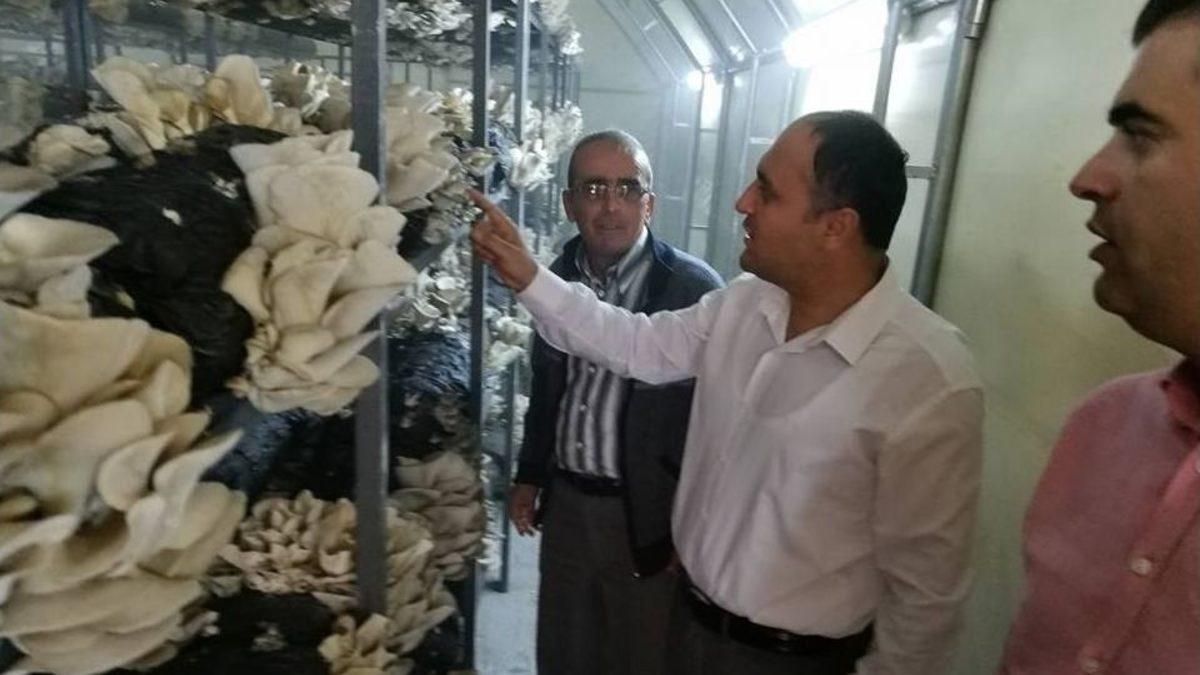 Konya’nın Beyşehir İlçe Belediye Başkanı Murat Özaltun, Derebucak ilçesinde kurulan istiridye mantarı üretim tesisinde incelemelerde...