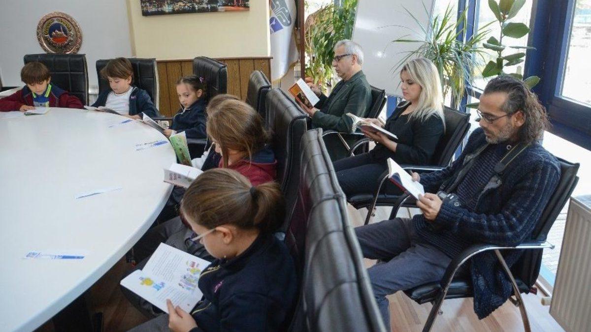 Bursa’nın Karacabey Belediye Başkanı Ali Özkan, makamında öğrencilerle beraber kitap okudu.Karacabey Belediyesi tarafından başlatılan ve özel bir okulun 2/A sınıfı öğrencileri ile gerçekleştirilen ‘Başkanımla okuyorum’ projesi Başkan Ali Özkan’ın makam odasında gerçekleşti. Başkan Ali Özkan, miniklirle beraber kitap okudu. Çocuklar başkan ile aynı masada kitap okuma heyecanını yaşadı. Sınıf öğretmenleri Nuray Bulut ile okulun müdür yardımcısı Sibel Burç’un da eşlik ettiği programda minikler Başkan Özkan’ın hediye ettiği hikâye kitaplarını okudu.Ali Özkan, “Bizler eğitime son derece önem veriyoruz. Bununla alakalı ilçemizde bu zamana kadar çeşitli yaptırımlarımız olmuştu. Bugün de böyle güzel bir sosyal sorumluluk projesi ile sizlerin karşısına çıkmaktan son derece mutluyuz. Kitap okumanın giderek köreldiği ve yerini sanal ortamların aldığı günümüzde, hala kitap okuma alışkanlığını sürdüren arkadaşlarımız elbette var. Bizler, bunların çoğalması için böyle bir faaliyette buluştuk” dedi.Kitap okuma sonunda hep birlikte kahvaltı yapılırken, Başkan Ali Özkan da minik öğrencilere süt dağıttı. Ali Özkan, her hafta salı günü saat 09.30’da belediyede farklı öğrencilerle kitap okuyacaklarını belirtti.