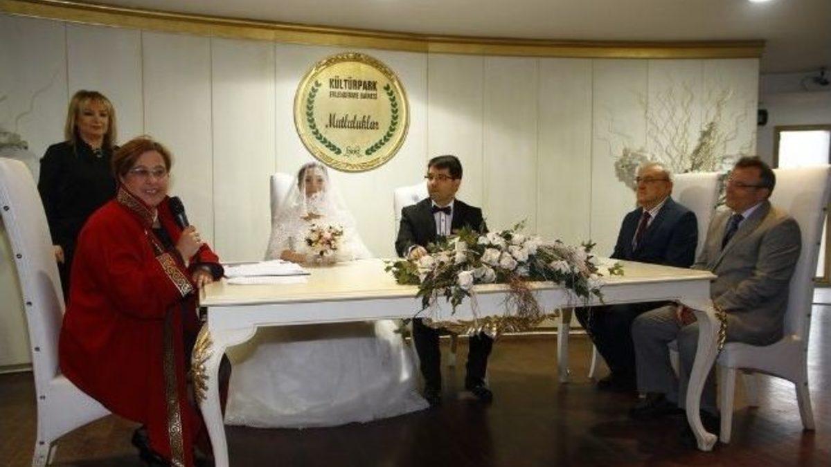 Konak Belediye Başkanı Sema Pekdaş, belediye başkanı seçildikten sonra ilk nikâhını Kültürpark Fuar Nikah Salonu’nda kıydı. Nikah memuru cübbesini giyen Pekdaş, İzmir Üniversitesi’nde öğretim görevlisi olarak çalışan Esra Rüzgar ile Yusuf Selçuk Ateşkan çiftini mutluluğa bağlayan imzaları attırdı. Başkan Pekdaş, genç çifte kaç çocuk yapacaklarına kendi özgür iradeleriyle karar vermeleri öğüdünde de bulundu.SEVGİ VE SAYGI ÖNCELİK OLSUNKonak İlçe Milli Eğitim Müdürü Mehmet Rüzgar’ın kızı, İzmir Üniversitesi Yazılım Mühendisliği Araştırma Görevlisi Esra Rüzgar ile merhum Sinan Ateşkan’ın oğlu Bilgisayar Mühendisliği Öğretim Görevlisi Yusuf Selçuk Ateşkan’nın nikah törenine katılan Konak Belediye Başkanı Sema Pekdaş, mazbatasını aldıktan sonra ilk nikahını da kıymış oldu. İzmir Üniversitesi Rektörü Prof. Dr. Kayhan Erciyeş ile Fen Edebiyat Fakültesi Dekanı Prof. Dr. Aydın Tiryaki’nin şahitlik yaptığı törende nikah memuru cübbesini giyen Pekdaş, avukatlık mesleğinde pek çok boşanma davasına tanıklık ettiğini belirterek gençlere; bunun önüne geçmenin ilk şartının çiftlerin birbirine sevgi ve saygı duymayı eksik etmemeleri olduğunu söyledi.ÇOCUK KARARINI ÖZGÜRCE VERİNMutlu çifte evlilik hayatları boyunca her kararı birlikte ve özgürce almaları tavsiyesinde bulunan Pekdaş, “Hükümet insanlara ne kadar çocuklarının olması gerektiğini bildiriyor ama bizler hukuk devletinin demokrasiyle yönetilen bir ülkenin yurttaşları olarak kendi özgür irademizle kararlarımızı kendimiz vereceğiz. Evlilik süreci içinde her türlü kararı özgürce vereceğinize inanıyorum ve bu özgürlük Atatürk’ün yarattığı aydınlanmanın bir devamıdır” diyerek gençlere mutluluk diledi.Heyecan ve mutlulukları gözlerinden okunan genç çifti bu mutlu gününe aileleri, iş arkadaşları, akrabaları ve sevenleri de şahitlik etti. 5 yıllık arkadaşlıklarını bir ömür boyu birlikteliğe taşımak istediklerini ifade eden Ateşkan çifti, Başkan Pekdaş ile bir ilki yaşamaktan mutlu olduklarını ve kendileri için unutulmaz bir anı olacağını söyledi.
