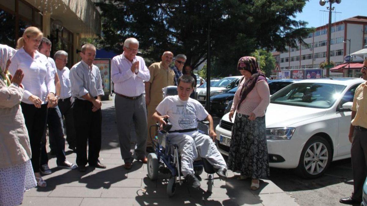 Ereğli Belediye Başkanı Halil Posbıyık, Kocaali Mahallesi'nde verilen iftarda engelli gence söz verdiği akülü sandalyeyi teslim etti. Akülü sandalyesine kavuşan 17 yaşındaki kas hastası Utku, Başkan Posbıyık’a teşekkür ederek, akülü arabası ile belediye önünde tur attı. Ramazan ayında 31 mahallede iftar veren Ereğli Belediye Başkanı Halil Posbıyık, Kocaali Mahallesi'nde verilen iftarda kendisinden akülü sandalye isteyen genç Utku’ya verdiği sözü yerine getirdi. Belediye tarafından alınan akülü sandalyeyi teslim alan genç Utku’nun mutlu olduğu gözlenirken, kendisine bayram öncesi bu mutluluğu yaşatan Başkan Halil Posbıyık’a da teşekkür etti. 17 Yaşında olan ve kas hastalığı nedeniyle ailesinin yardımı ile ihtiyaçlarını gören Utku’ya sandalyesini teslim eden Başkan Posbıyık, daha önce de verilen sözlerin yerine getirilmemesinden dolayı Utku’nun insanlara güveninin kalmadığını, kendisinin verdiği sözü yerine getirmesinden dolayı Utku’nun teşekkür etmesinin kendisi için çok önemli olduğunu kaydetti. Başkan Posbıyık, “Belediyemizin Kocaali Mahallesi'nde verdiği iftarda tanışmıştık. Kendisi yaşam ihtiyacının karşılanması için bizden yardım istedi. İnsanlara da güvensizdi. Engelliler derneğinden de yardım istemesine rağmen verilmediğini, kandırıldığını ima etmek istedi. Ben de kendisine vatandaşlar arasında ‘Sana söz veriyorum. Halil Posbıyık sözü veriyorum. Bu arabayı sana alacağım’ demiştim. Utku Demirtaş 17 yaşında bir gencimiz. Kas hastası. Hayatının engellerini aşmak istiyor ve arabayla gezmek istiyor. Biz de gereğini yaptık. Kasım ayında 18 yaşına girecek olan Utku’yu bayram öncesinde mutlu edelim dedik. Belediye olarak kendisine otomatik sandalyeyi aldık. Şimdi bana teşekkür ediyor. O günlerde bana güvenmemişti. Şimdi ise teşekkür etmesi beni son derece mutlu etti.” dedi. Genç Utku, kendisine verilen akülü sandalyeye babasının yardımı ile bindirildi. Utku, arabasına bindirildikten sonra belediye önünde tur attı.