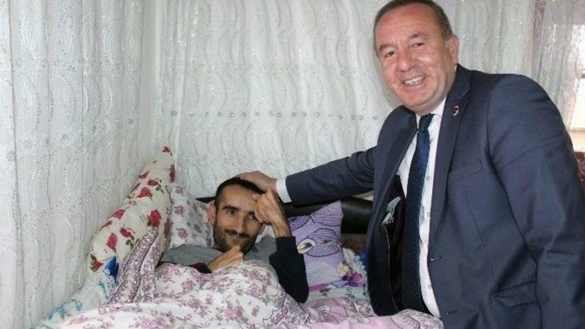 Sungurlu Belediye Başkanı Abdulkadir Şahiner, 13 yıldır yatağa bağımlı halde yaşayan Abdullah Sepetçi’ye (29) tekerlekli sandalye hediye etti.Arifegazili Köyü Şahlı Mahallesi’nde oturan Abdullah Sepetçi, İstanbul’da inşaata çalışırken elektrik çarpması sonucu yüzde 95 engeli olarak 13 senedir yatağa bağımlı olarak yaşamını sürdürüyordu. Abdullah’ın babası Mustafa Sepetçi, Arifegazili Muhtarı Şükrü Yadigar ile birlikte Sungurlu Belediye Başkanı Abdulkadir Şahiner’i ziyaret ederek oğlu için tekerlekli sandalye talebinde bulundu. Baba sepetçi’nin talebini geri çevirmeyen Belediye Başkanı Şahiner, istenen tekerlekli sandalyeyi temin ettirdi. Yıllardır yatağa bağımlı yaşamını sürdüren Sepetçi’yi evinde ziyaret eden Başkan Şahiner tekerlekli sandalye’yi Abdullah Sepetçi’ye hediye etti.Tekerlekli sandalye’yi teslim etmek için köye gelen Belediye başkanı Şahiner’e teşekkür eden baba Mustafa Sepetçi, " Başkanım Allah sizden razı olsun, isteğimizi yerine getirdiniz. Evimize gelerek bizleri onurlandırdınız. Allah sizi başımızdan eksik etmesin" dedi.