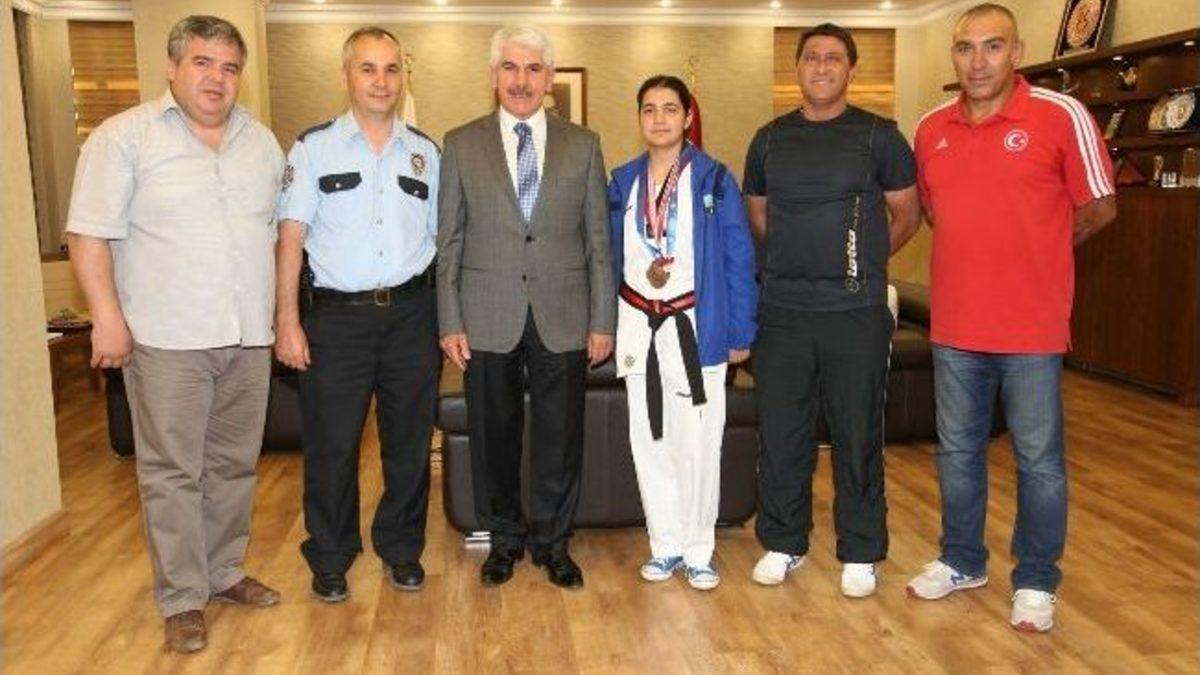 Başkan Sakallı Türkiye Üçüncüsü Beyza Burkaş’ı Ağırladı