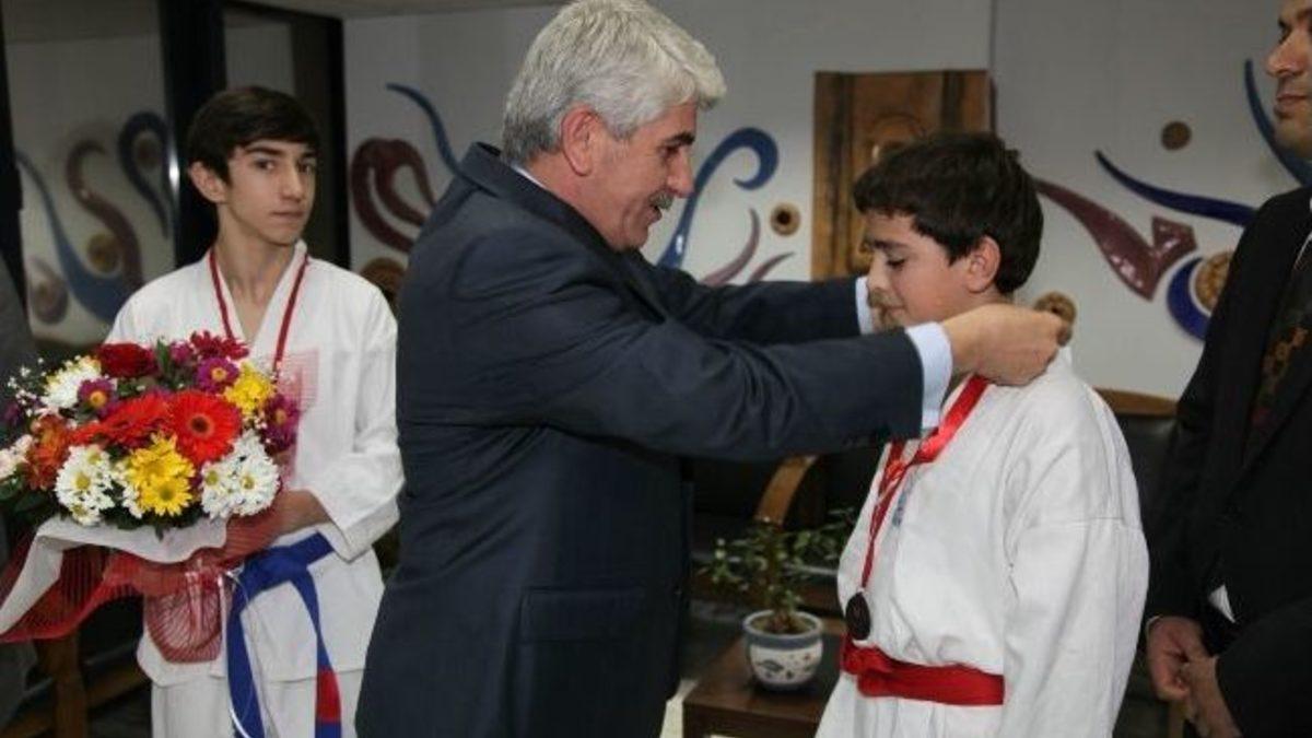 Kulüp Başkanı Hüseyin Kılınç ve Başkan Yardımcısı İlhami Atik’in de yer aldığı ziyarette, başarılı tekvandocular Sefer Özaydın ve Furkan Şengöz, Gençler İl Birinciliği müsabakalarında elde ettikleri üçüncülüğü kendilerine büyük destek sağlayan Başkan Sakallı’ya armağan ettiler.