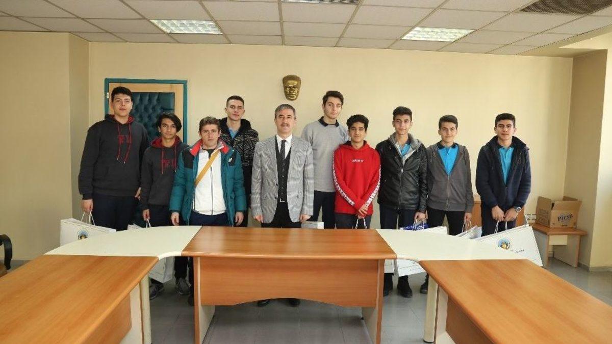 Turgutlu Belediye Başkanı Turgay Şirin, Türkiye şampiyonası öncesinde kendisine ziyarete gelen ve spor kıyafeti talebinde bulunan Turgutlu Lisesi Erkek Voleybol Takımı’nın bu isteğine kayıtsız kalmadı. Eşofman takımlarını sporculara teslim eden Başkan Şirin, genç sporculardan Türkiye finallerinde gruptan çıkma sözü aldı.Geçtiğimiz günlerde Turgutlu Belediye Başkanı Turgay Şirin’i ziyaret ederek, katılacakları Türkiye finalleri öncesinde spor kıyafet isteğinde bulunan Turgutlu Lisesi Erkek Voleybol Takımı oyuncularına Başkan Şirin tarafından spor kıyafeti desteğinde bulunuldu. Öğrencilerin isteğini yerine getirerek eşofman takımlarını teslim eden Başkan Şirin, “Genç öğrenci kardeşlerimiz geçtiğimiz günlerde bizleri ziyarette bulunmuşlardı. Bir istekleri vardı. Finallerde kullanacakları eşofman takımı istemişlerdi. Bizler her zaman öğrencilerimizin ve sporcularımızın yanındayız. Onların bu isteğini yerine getirdik. Kendilerine oynayacakları maçlarda başarılar diliyorum ve Türkiye şampiyonluğu ile Turgutlu’muza döneceklerine inanıyorum”dedi. Belediye Başkanı Turgay Şirin’e teşekkür ettiklerini belirten Beden Eğitimi Öğretmeni Mustafa Çakırca, gruplardan çıkma başarısını göstereceklerinin de sözünü verdi.