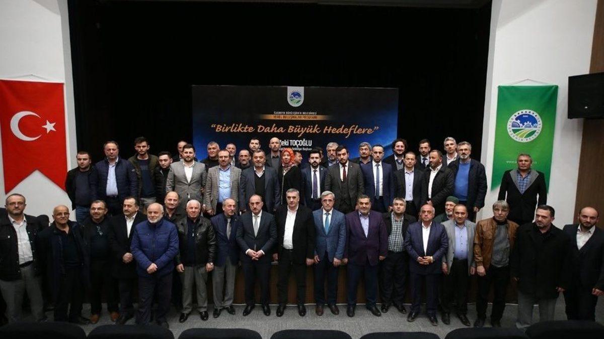 Sakarya Büyükşehir Belediye Başkanı Zeki Toçoğlu, Akyazı’da AK Parti İlçe Teşkilatı’nı ziyaret etti.Sakarya Büyükşehir Belediye Başkanı Zeki Toçoğlu, AK Parti İlçe Teşkilatı mensuplarıyla Sosyal Gelişim Merkezinde bir araya geldi. Gerçekleşen toplantıya AK Parti İl Başkanı Fevzi Kılıç, AK Parti Akyazı İlçe Başkanı Feyzi Bora, Akyazı Belediye Başkanı Hasan Akcan, Genel Sekreter Yardımcıları Ayhan Kardan ve Ali Oktar, SASKİ Genel Müdür Yardımcısı Sebahattin Belik, Büyükşehir ve SASKİ bürokratları, teşkilat mensupları ve mahalle temsilcileri de katıldı. Ziyarette konuşan Akyazı Belediye Başkanı Hasan Akcan, Büyükşehir Belediyesinin gerçekleştirdiği yatırımlar için Başkan Toçoğlu’nun teşekkür etti. AK Parti İlçe Başkanı Feyzi Bora ise Türkiye’nin içinde olduğu süreçte teşkilatlar olarak destek olma yolunda hükümete ellerinden geldiğince destek sunacaklarını ifade etti.Başkan Zeki Toçoğlu ise yaptığı açıklamada, “Önümüzde ciddi ve önemli bir seçim süreci var. 2019’u hep birlikte başarılı bir şekilde tamamlamalıyız. Siz kıymetli teşkilat mensuplarımızla da bir araya gelmek istedik. Sizleri dinlemek üzere buradayız. Toplantı boyunca SASKİ ve Büyükşehir’in tüm bürokratları burada sizlerle olacak. Teşkilatımızın değişen tüm üyelerine hayırlı olsun dileklerimi iletiyorum. Allah birlik ve beraberliğimizi bozmasın. Akyazı’da altyapı ve üstyapıda önemli bir aşama kat ettik. SGM’yi hizmete aldık. Spor kompleksini kullanıma sunduk. Bölgesine fayda sağlayacak İtfaiye Binamız faaliyete başladı. Geçtiğimiz yıl 10 milyonluk asfalt çalışması gerçekleştirdik. Büyükşehir Belediyesi olarak tüm grup yolarını 2018 yılı içerisinde tamamlayacağız. Hedefimiz 1 milyon ton asfalt serimi gerçekleştirmek. İnşallah tüm bunlarla birlikte Akyazı ve diğer ilçelerimiz pırıl pırıl olacak. Akyazı için yeni bir çalışmamız daha var. İnşallah Akyazı’ya Ormanköy tarafından yeni bir ilçe girişi kazandıracağız. Çevre düzenlemesi, kaldırımları, aydınlatmalarıyla yeni yolumuz Akyazı’nın çehresini değiştirecek. İnşallah ilçemizin girişi modern bir görünüme kavuşacak. Hayırlı olsun” dedi.Toçoğlu sözlerinin devamında, “Karapürçek ve Akyazı Küçücek Mahallesi Altyapı Projesi kapsamında Küçücek Mahallemize içmesuyu, kanalizasyon ve yağmursuyu hattı inşa ederek mahallemizi sağlam altyapı ile buluşturuyoruz. Keremali İçmesuyu Projesi ile de 5 mahallemize birinci sınıf içmesuyu ulaştırırken aynı zamanda hat üzerine yerleştireceğimiz HES ile enerji üreteceğiz. Bu projemizde hat çalışmaları tamamlandı. Kuzuluk Mahallemizin tüm atıksularını Akyazı Atıksu Arıtma Tesisi’ne ulaştıracak 70 kilometrelik kanalizasyon hattımızı tamamladık. Ayrıca ilçemize 10 milyon liralık içmesuyu yatırımı yaparak 79 kilometrelik bir hat inşa ediyoruz. Bu projemizde de sona yaklaştık. İnşallah kısa süre içerisinde tamamlayarak Akyazılı hemşerilerimizi daha kaliteli ve bol içmesuyu ile buluşturacağız” diye konuştu.
