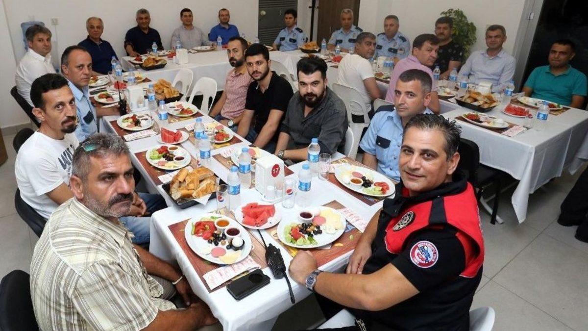 Kepez Belediye Başkanı Hakan Tütüncü, Varsak Şehit Uğur Gökcan Polis Merkez Amirliği’nde sahurunu polislerle birlikte yaptı.Kepez Belediye Başkanı Hakan Tütüncü Varsak bölgesinin güvenliğinden sorumlu Varsak Şehit Uğur Gökcan Polis Merkez Amirliği’nde polislerle birlikte sahur yaptı. Belediye ile hayırseverler işbirliğiyle yaptırılan polis merkezine Belediye Başkan Yardımcısı Mustafa Özsoy ve AK Partili meclis üyesi Serhat Demir ile birlikte giden Başkan Tütüncü’yü, Kepez Emniyet Müdürü İlker Ekşi ve ekibi karşıladı.Tek tek tokalaştıVarsak bölgesindeki 25 mahallede yaklaşık 250 bin Kepezlinin can ve mal güvenliğinden sorumlu polis memurlarıyla tek tek tokalaşan Tütüncü, hal hatır sordu, personelin polis merkezinden memnuniyetini sorguladı. Ardından polislerle birlikte sahurunu yapan Tütüncü, çıkışta hatıra fotoğrafı çektirdi.Üçüncü polis merkezi de yoldaKepez’in eğitim, sağlık, spor, çevre, sosyal yaşam ve güvenlik konusundaki tüm ihtiyaçları belediyesinin görev başında olduğunu hatırlatan Tütüncü, her türlü olumsuz koşullarda vatandaşlarımızın can ve mal güvenliğinden sorumlu emniyet çalışanlarının da daima yanında olduklarını söyledi. Bu polis merkezinin, görev süresinde açılan Altınova Şehit Muhammet Oğuz Kılınç Polis Merkez Amirliği’nde sonra ikinci polis merkezi olduğunu belirten Tütüncü, ilçesine bir tane daha açılması için hazırlıkların sürdüğünü söyledi. Bunların devlet yatırımı değil, belediye ile hayırseverler işbirliğiyle sonuçlandığını belirten Tütüncü, ilçesinde güvenlik açığı olmaması için çalışacaklarını söyledi.