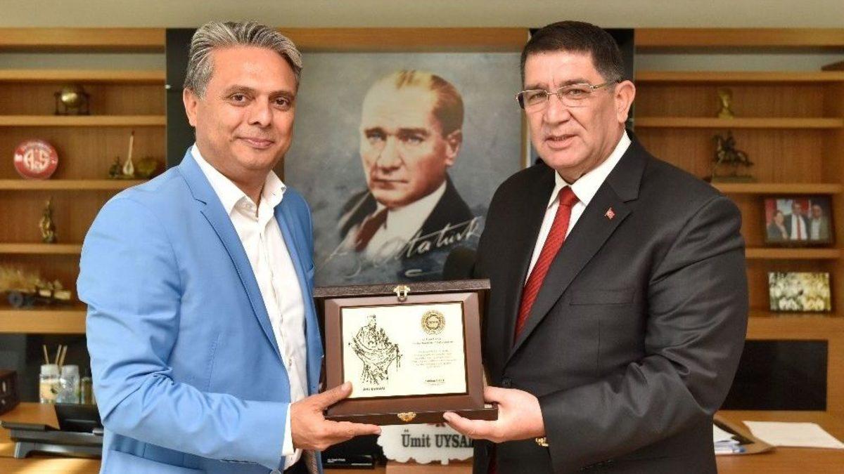 Antalya Esnaf ve Sanatkarlar Odaları Birliği (AESOB) Başkanı Adlıhan Dere, 21’inci Ahilik Haftası kutlamalarına verdiği destekten dolayı Muratpaşa Belediye Başkanı Ümit Uysal’a teşekkür plaketi takdim etti.AESOB Başkanı Adlıhan Dere, Başkan Vekilleri Mehmet Ali Alkan ve Süleyman Şahin Başkan Uysal’ı ziyaret etti. Dere, Başkan Uysal’ın her zaman esnafın yanında olduğunu belirterek, “’Esnaf mutlu ise bu mutluluk tüm kente yayılır’ dediniz ve esnafın mutluluğu için ilk günkü heyecanla esnafımızın yardımına koştunuz” diye konuştu. Dere, bununla birlikte 21’inci Ahilik Haftası etkinliklerine verdiği destekten dolayı teşekkür etti, plaket takdim etti.AESOB Başkanı, ayrıca, Başkan Uysal’a, inşaatı tamamlanan sivil toplum merkezine AESOB eski Başkanı Abdullah Sevimçok’un adını vererek yaşatması nedeniyle de teşekkür etti. Ziyaret dolayısıyla duyduğu memnuniyeti dile getiren Başkan Uysal, esnafın kent ekonomisinin en önemli dinamiklerinden olduğuna işaret etti. Başkan Uysal, “Gerek kentin altyapısına yönelik yatırımlarımız gerekse de Kaleiçi Festivali gibi uluslararası etkinliklerimiz, turistin kent merkezine gelip, esnafımızdan alışveriş yapmasına katkı sağlama amacı da taşımaktadır. Çevreci Komşu Kart Projemizde dahi komşularımızın biriktirdikleri kredi puanları, Antalya esnafından alışveriş yaparak harcamalarını sağlıyoruz” diye konuştu.