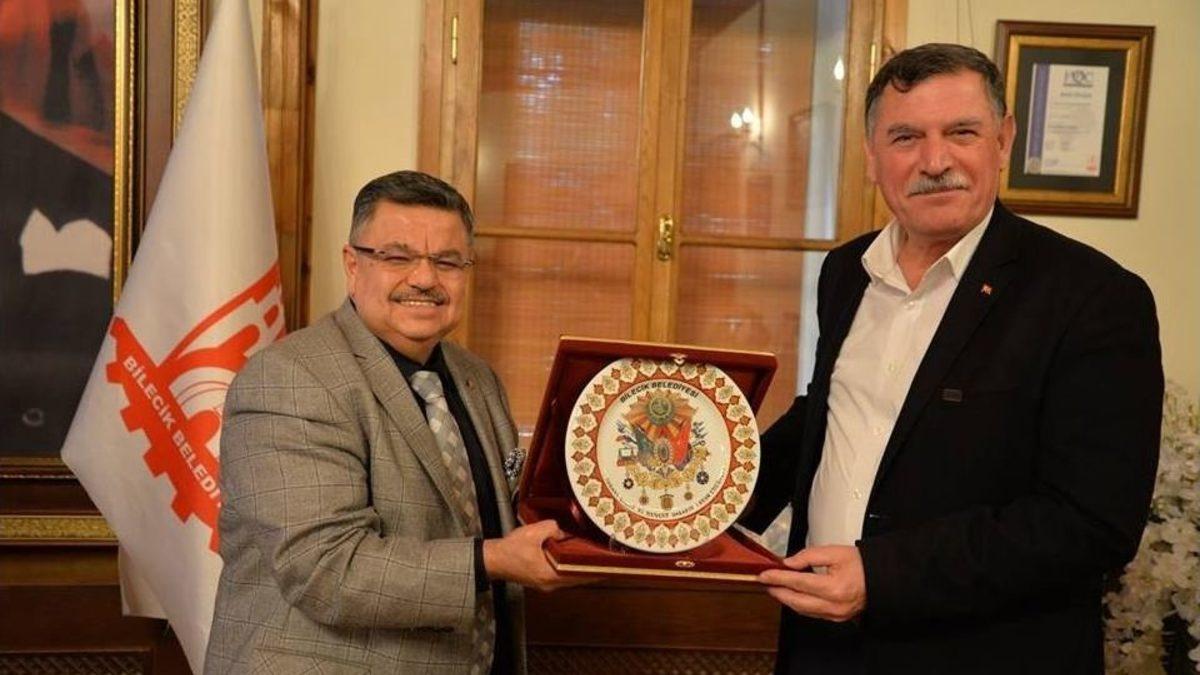 BİLECİK (İHA) – Bilecik Belediye Başkanı Selim Yağcı, gün boyu kendisine gelen misafirlerini ağırladı.İlk olarak Vezirhan Belde Belediye Başkanı Mehmet Duymuş’u makamında kabul eden Başkan Yağcı, 16 Nisan tarihinde gerçekleştirilecek olan referandumla alakalı fikir alışverişinde bulundu. Ziyarette AK Parti İl Başkanı Fikret Karabıyık da hazır bulunurken, Başkan Yağcı ziyaretlerinden dolayı ikiliye teşekkür ederek, "Güçlü ve daha güzel bir Bilecik için birlikte yaptığımız çalışmalarımızda güzel sonuçlara ulaşmayı Cenab-ı Allah’tan temenni ediyorum” dedi.Ardından AK Parti İl ve İlçe Teşkilatı Sosyal Politikalar ve Halkla İlişkiler Birim Başkanları ile bir araya gelen Başkan Yağcı, son olarak da Gümrük ve Ticaret Bakanlığı bünyesinde Bilecik’e Ticaret İl Müdürü olarak atanan Şinasi Balta’yı ağırladı. Bilecik’te vekil olarak görev yaparken Ticaret İl Müdürü olarak atanan Şinasi Balta’ya hayırlı olsun temennilerinde bulunan Başkan Yağcı, görevinde başarılar diledi.Öte yandan Başkan Yağcı, tüm misafirlerine üzerinde Ormanlı Tuğrası bulunan birer tabak hediye etti.