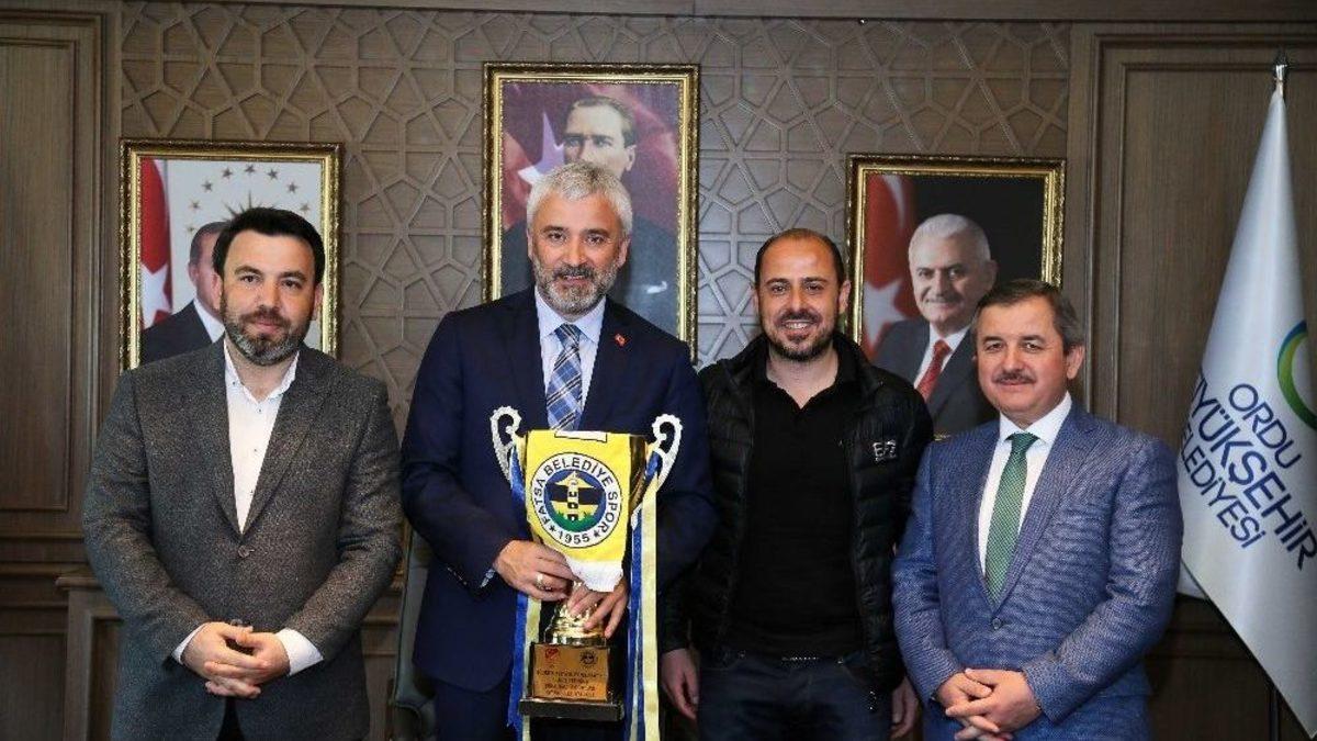 Ordu Büyükşehir Belediye Başkanı Enver Yılmaz, Bölgesel Amatör Lig (BAL) Play-Off müsabakasında rakibi Artvin Hopaspor’u 2-1 yenerek 3. Lig’e yükselme başarısını gösteren Fatsa Belediyespor’un yönetici ve sporcularını kabul ederek kutladı."Birlikte heyecanlandık, birlikte mutlu olduk"Başkan Enver Yılmaz, Fatsa Belediyespor’un idari ve teknik yönetimi ile futbolcularını tebrik ederek, “Ordu ilinden ikinci bir futbol takımının profesyonel lige yükselmesinin gururunu yaşıyoruz. Fatsa Belediyespor’un 19 yıl aradan sonra üçüncü lige çıktığı bu süreçte heyecanı ve mutluluğu hep birlikte yaşadık. Sizler kadar bizler de mutlu olduk. Bu mutluluğu bize yaşattıkları için başta Fatsalı hemşehrilerimiz olmak üzere, Fatsa Belediye Başkanımız Hüseyin Anlayan’ı, Kulüp Başkanımız Ayhan Demir’i, teknik kadroyu ve futbolcuları tebrik ediyorum ve kendilerine teşekkür ediyorum” dedi.“Şampiyonluk primi sözümüzü yerine getireceğiz”Fatsa Belediyespor’a verdikleri şampiyonluk primi sözünü yerine getireceklerini söyleyen Başkan Yılmaz, “Bu mutluluğu taçlandırmaya yönelik geçmişte vermiş olduğumuz taahhütleri yerine getireceğiz. Fatsa Belediyespor’un şampiyon olması durumunda söz verdiğimiz şampiyonluk primini Ayhan Başkan ile birlikte karşılayacağız” diye konuştu.“Tesisleşme konusunda destek olacağız”Fatsa Belediyespor’un tesisleşmesine destek vereceklerini belirten Başkan Enver Yılmaz, “Fatsa Belediye Başkanımız ve Kulüp Başkanımızla birlikte önümüzdeki sürece ilişkin görüş alışverişinde bulunduk ve gerekli planlamalarımızı yaptık. 3. Lig demek profesyonellik ve kurumsallık demek. Bu nedenle kurumsallaşmayı sağlamamız gerekiyor. Fatsa Bolaman’daki alanımızda yeni bir düzenleme yaparak orayı Fatsa Belediyesporlu futbolcularımızın konaklayacağı, antrenmanlarını yapacağı ve sosyal aktivitelerde bulunacağı bir tesis hâline getireceğiz. En kısa zamanda bu tesisi ihale edip, yapımını tamamlamayı ve Fatsa Belediyespor’a teslim etmeyi istiyoruz. Bu sayede Fatsa Belediyespor’un tesisleşmesi konusunda verdiğimiz sözü de yerine getirmiş olacağız” dedi.“Fatsa Belediyespor, 3. Lig’de kalıcı olmak için gereken her şeye sahip”Fatsa Belediyespor’un 3. Lig’de kalıcı olması için gerekli her şeye sahip olduğunu belirten Başkan Yılmaz, “Fatsa Belediyespor, 3. Lig’de kalıcı olmak için gerekli olan taraftara ve heyecana sahip. Bugünkü mutluluğumuz ve heyecanımız, inşallah 3. Lig’de bir üst lige çıkma mücadelesi gösterirken de devam edecek” şeklinde konuştu.