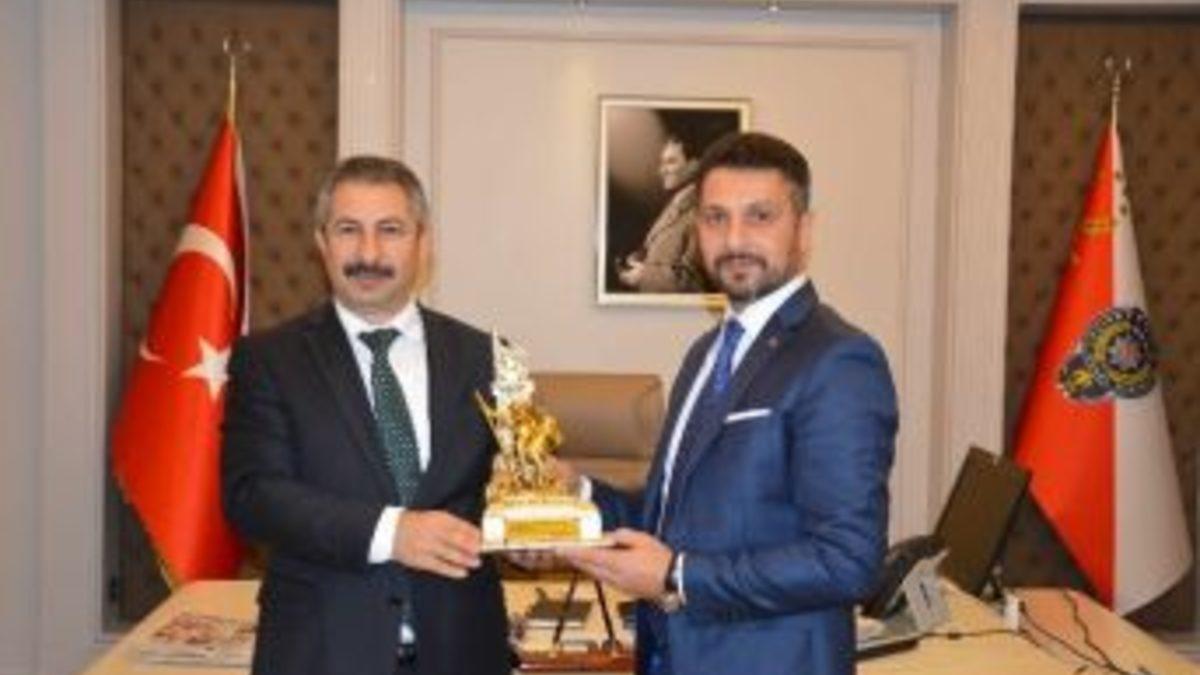 Sivrihisar Belediye Başkanı Hamid Yüzügüllü, Eskişehir Emniyet Müdürlüğü’ne atanan Engin Dinç’e hayırlı olsun ziyaretinde bulundu.Başkan Yüzügüllü, Dinç’e yeni görevinde başarılar diledi. Polis-vatandaş işbirliğinin önemine dikkat çeken Emniyet Müdürü Dinç de, Başkan Yüzügüllü’ye ziyaretten duyduğu memnuniyeti dile getirdi. Başkan Yüzügüllü, Dinç’e Dünya’nın merkezi Sivrihisar’dan Nasreddin Hoca biblosu hediye etti.