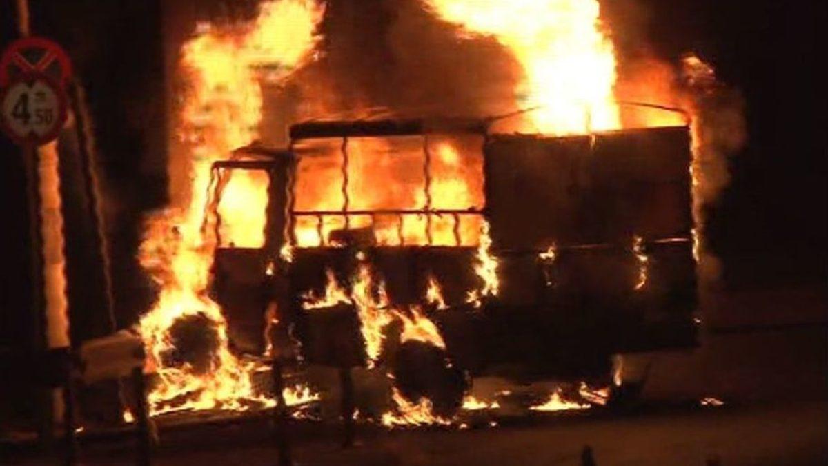 Ankara’da kimliği belirlenemeyen 3 kişinin gasp ettiği tiner ve boya yüklü kamyonet zanlıların yaptığı kazanın ardından alev alev yandı.Olay, saat 03.30 sıralarında Keçiören’de meydana geldi. Edinilen bilgilere gere; henüz kimliği belirlenemeyen 3 şahıs, Şenlik Mahallesi Nuri Pamir Caddesi üzerinde Keçiören Emniyet Müdürlüğü önündeki Keçiören Belediyesi Park ve Bahçeler Müdürlüğüne ait 06 AJ 8317 plakalı tiner ve boya yüklü kamyoneti gasp etti.Belediye çalışanlarının ihbarı üzerine polis ekipleri, hırsızları yakalamak için alarma geçti. Çok sayıda polis ekibini peşine takan kamyonet Osmangazi Caddesi üzerinden Bağlum istikametinde ilerledi. Bağlum’dan Protokol Yolu’na çıkan kamyonet, şehir merkezi istikametinde ilerlemeye başladı. Yaklaşık 45 dakika süren kovalamacanın ardından, kamyonet, sürücüsünün direksiyon hakimiyetini kaybetmesi sonucu Protokol Yolu’yla Kuzey Ankara Kentsel Dönüşüm Konutları yol ayrımında bariyerle çarptı. Zanlılar, kazanın ardından yaya olarak kaçmaya başladı. Kamyoneti teslim alan polis ekipleri, bir yandan da kaçan zanlıların yakalanması için çalışma başlattı. Polis ekiplerinin yaptığı arama çalışmaları sonucunda zanlılardan biri yakalanırken, diğer zanlıların yakalanma çalışması sürüyor.Yanan kamyonette peş peşe patlamalar meydana geldiKaza yapan kamyonetin motor kısmından alevler yükselmeye başladı. Polis ekiplerinin çağrısı üzerinde olay yerine itfaiye ve Keçiören Belediyesi’nin sulama tankeri sevk edildi. Motor kısmında başlayan yangının kamyonetin kasasında sıçramasıyla kamyonette ardı ardına patlamalar meydana geldi. Polis ekipleri patlamalardan dolayı, Protokol Yolu’nu tek taraflı trafiğe kapattı. Belediye tankerinden sıkılan suyla yangın kontrol altına alındı. Kısa süre sonra bölgeye gelen itfaiye erlerinin yaptığı söndürme ve soğutma çalışmalarının ardından yangın tamamen söndürülürken, kamyonet kullanılamaz hale geldi.Olayla inceleme başlatıldı. (CNR-FT)