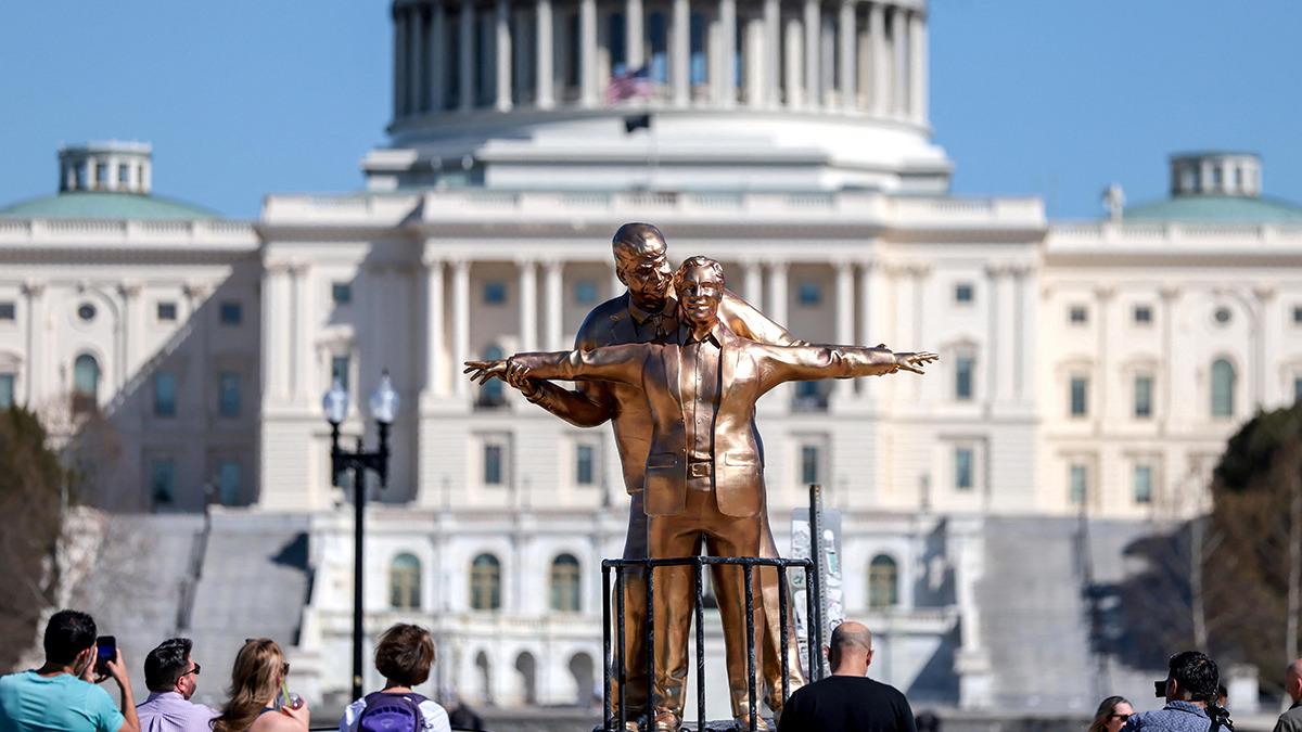 ABD’nin başkenti Washington DC’de Kongre Binası yakınlarına yerleştirilen dikkat çekici bir heykel gündem oldu. Yaklaşık 3,5 metre yüksekliğindeki heykelde ABD Başkanı Donald Trump ile pedofili suçlamalarıyla yargılanırken hapiste ölü bulunan milyarder Jeffrey Epstein birlikte tasvir edildi.