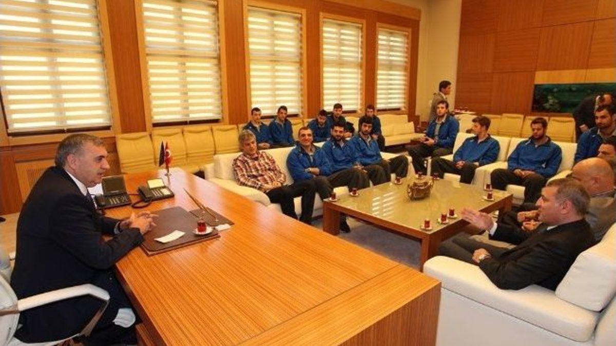 Sakarya Büyükşehir Belediye Başkanı Zeki Toçoğlu, Basketbol Şubesi Başkanı Akgün Altuğ ve Büyükşehir Belediyesi Basketbol Takımı oyuncularını makamında ağırladı.Sakarya basketboluna verdiği desteklerden dolayı Başkan Toçoğlu’na teşekkür eden Basketbol Şubesi Başkanı Altuğ, “Erkekler Bölgesel Basketbol Ligi’nde grubu lider tamamlayarak, play offlarda büyük başarı elde ettik. Ardından mücadele ettiğimiz Türkiye Basketbol 3. Ligi’nde zorlu maçlardan önemli puanlar aldık. Şimdi önümüzde Türkiye Basketbol 2. Ligi öncesi oynanacak play off mücadeleleri var. İlk maçımızı Boluspor ile oynayacağız. Bir üst lige çıkacak ekipleri belirleyecek bu zorlu maçlardan da büyük başarılarla ayrılarak yolumuza Türkiye Basketbol 2. Ligi’nde devam etmek istiyoruz. Hedefimize emin adımlarla ilerliyoruz. Sakarya Basketboluna önemli başarılar kazandırmaya devam edeceğiz” diye konuştu.Büyükşehir Belediye Başkanı Zeki Toçoğlu, “Basketbol takımımıza güveniyoruz. Geçmiş müsabakaları değerlendirdiğimizde bundan sonraki zorlu maçlardan da önemli galibiyetlerle ayrılacağımıza şüphemiz yok. 2. lige yükselme maçları öncesi tüm ekibimize başarılar diliyorum. Sakarya, sporun ve sporcunun daima yanında yer almış bir şehirdir. Bu şehrin hedefleri olan basketbol takımının BEKO Basketbol Ligi’nde mücadele etmesi en büyük arzumuzdur. İnşallah başarılarımızı devam ettirecek ve hedeflerimize ulaşacağız” ifadelerini kullandı.