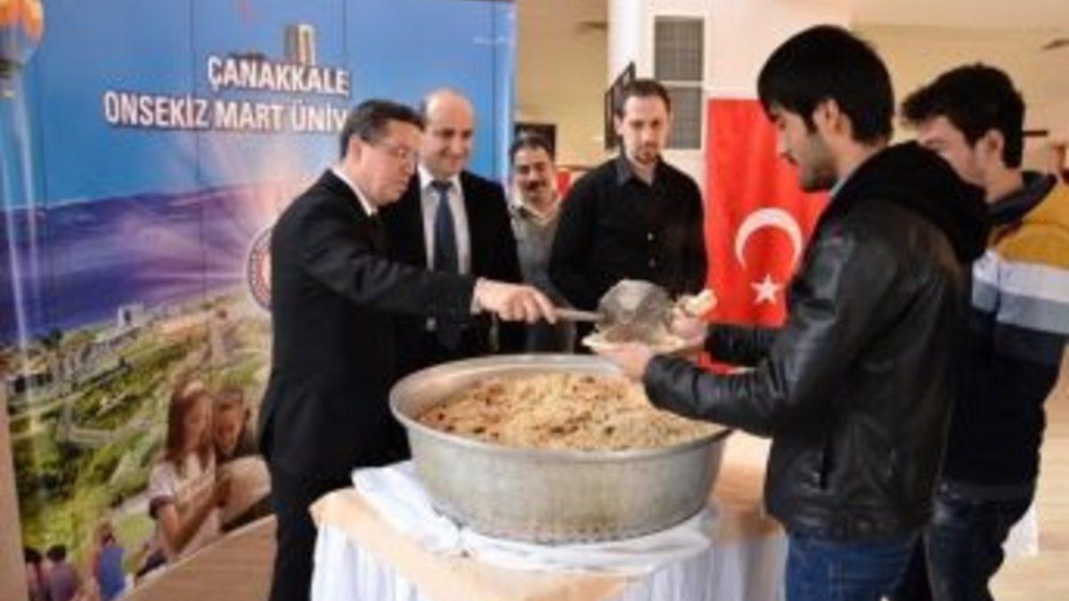 Türkmenistan Başkonsolosu Oraz Muhammed Charyev, Çanakkale Onsekiz Mart Üniversitesini ziyaret etti. Rektör Yardımcısı Prof. Dr. Mustafa Saçar ile bir araya gelen Charyev, ÇOMÜ’de eğitim gören Türkmen öğrencilere de Türkmen pilavı ikram etti.Türkmenistan Başkonsolosu Oraz Muhammed Charyev, Çanakkale Onsekiz Mart Üniversitesi’nde çeşitli temaslarda bulundu. ÇOMÜ Rektör Yardımcısı Prof. Dr. Mustafa Saçar ile bir araya gelen Charyev, Saçar’dan ÇOMÜ hakkında bilgi aldı. Ziyaretin ardından Rektör Yardımcısı Prof. Dr. Mustafa Saçar ve Kütüphane Dokümantasyon Daire Başkanı İsmail İşleyen, Başkonsolos Charyev’e ÇOMÜ Kütüphanesi’ni gezdirdi. Türkmenistan Başkonsolosu Oraz Muhammed Charyev, daha sonra ise ÇOMÜ’de okuyan Türkmenistanlı öğrencilerle bir araya geldi. Troia Kültür Merkezi’nde gerçekleşen buluşmada Türkmenistanlı gençlere seslenen Charyev "Ülkemizin geleceği sizlere emanet. Çanakkale’de eğitim öğretim için çok güzel bir ortam var. Burada başarılı olup ülkenize hizmet edeceğinize inanıyorum" dedi. Öğrencilerle soru-cevap şeklinde görüş alışverişinde bulunan Charyev, toplantının ardından Rektör Yardımcısı Prof. Dr. Mustafa Saçar ile birlikte öğrencilere Türkmen pilavı ikram etti.