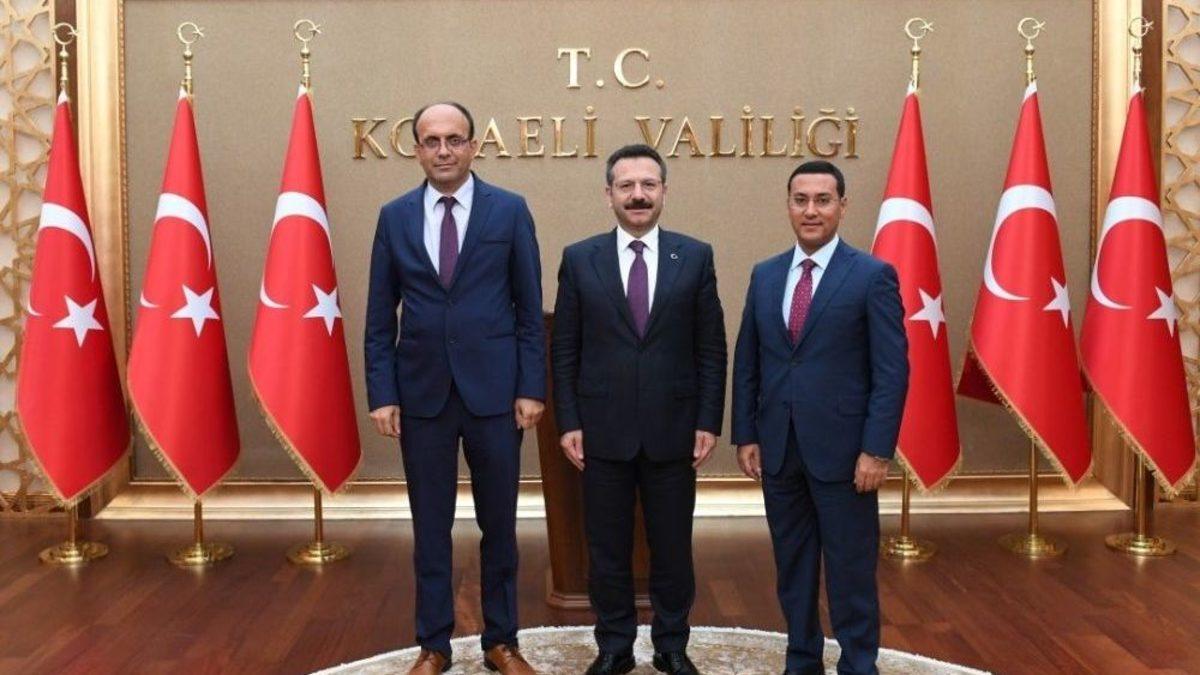 KOCAELİ(İHA) – İstanbul’a atanan Kocaeli Cumhuriyet Başsavcısı Mehmet Ali Kurt ve Cumhuriyet Başsavcı Vekili Ayhan Memük, Kocaeli Valisi Hüseyin Aksoy’a veda ziyaretinde bulundu.İstanbul Bölge Adliye Mahkemesi Cumhuriyet Savcılığına atanan Cumhuriyet Başsavcısı Mehmet Ali Kurt ve Bakırköy Cumhuriyet Başsavcı Vekilliğine atanan Cumhuriyet Başsavcı Vekili Ayhan Memük, Kocaeli Valisi Hüseyin Aksoy’u ziyaret etti. Veda ziyaretinde Başsavcısı Kurt ve Cumhuriyet Başsavcı Vekili Ayhan Memük, Kocaeli’de görev yapmaktan onur duyduklarını belirterek, desteklerinden dolayı Vali Aksoy’a teşekkür ettiler. Vali Aksoy ise Kurt ve Memük’e yeni görevlerinin hayırlı olması temennisinde bulunarak, başarılar diledi.