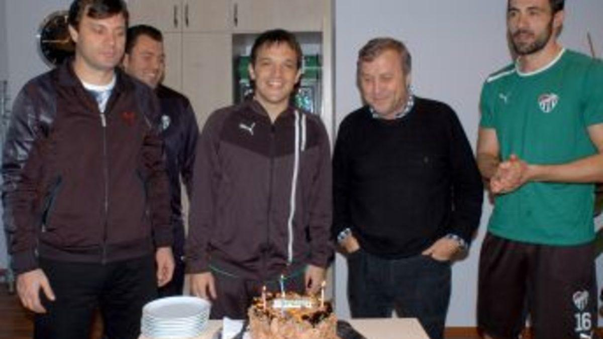 Bursaspor'un başarılı oyuncusu Pablo Martin Batalla, 28. yaş günü pastasını Başkan İbrahim Yazıcı, Teknik Direktör...